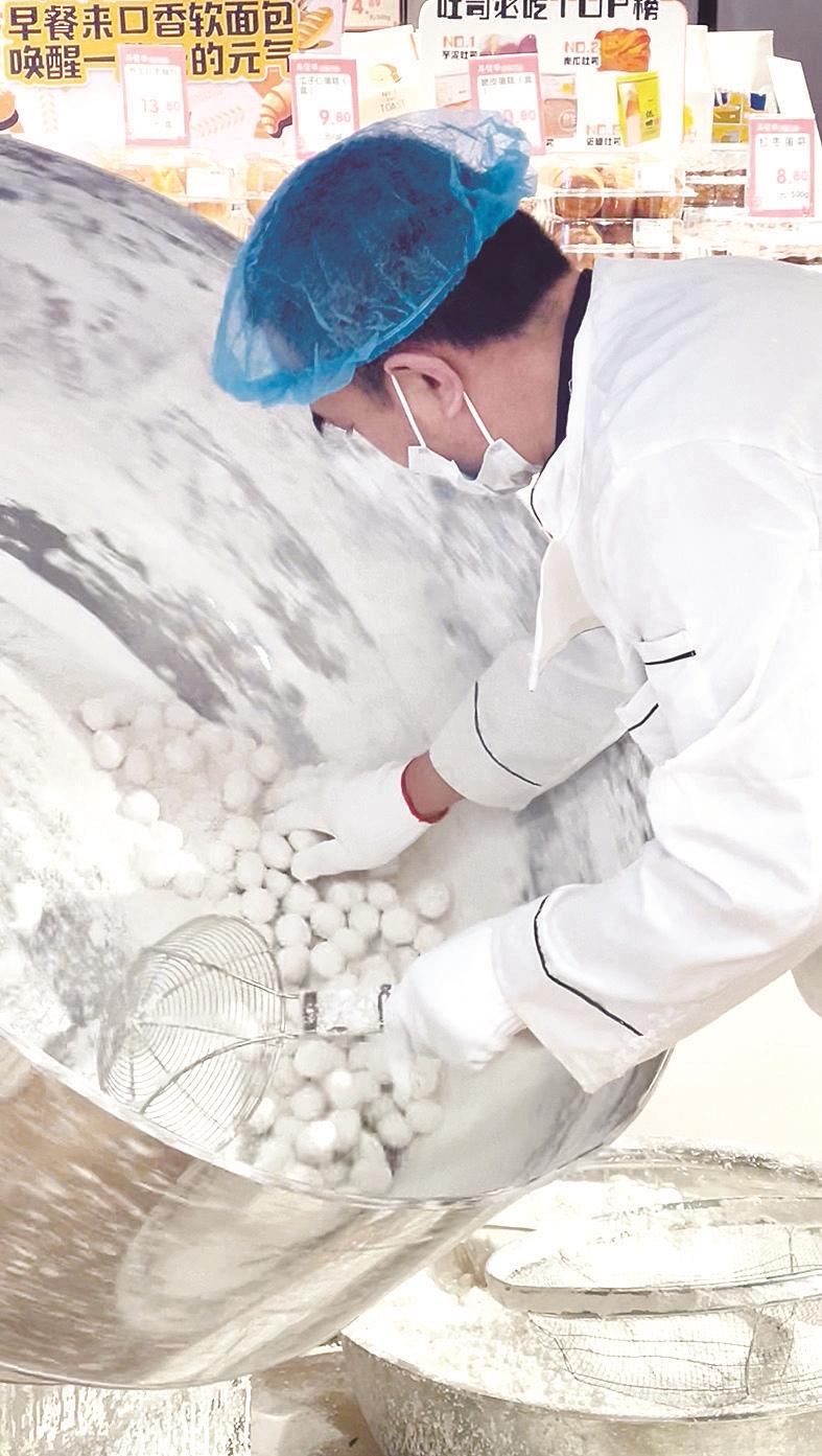 2月10日上午10点,记者来到青山路上的一家大型综合超市,在入口的显著位置,一口大大的元宵锅支了起来,工作人员抡着大笊篱,把蘸好水的馅料投进锅中。大锅不停翻滚,馅料逐渐均匀裹上糯米粉,反复四次之后,一个圆滚滚的元宵就摇好了。工作人员告诉记者,除了传统的桂花、黑芝麻口味的元宵外,还有核桃馅等口味的元宵供市民选购,这几天的销量也在不断增加。