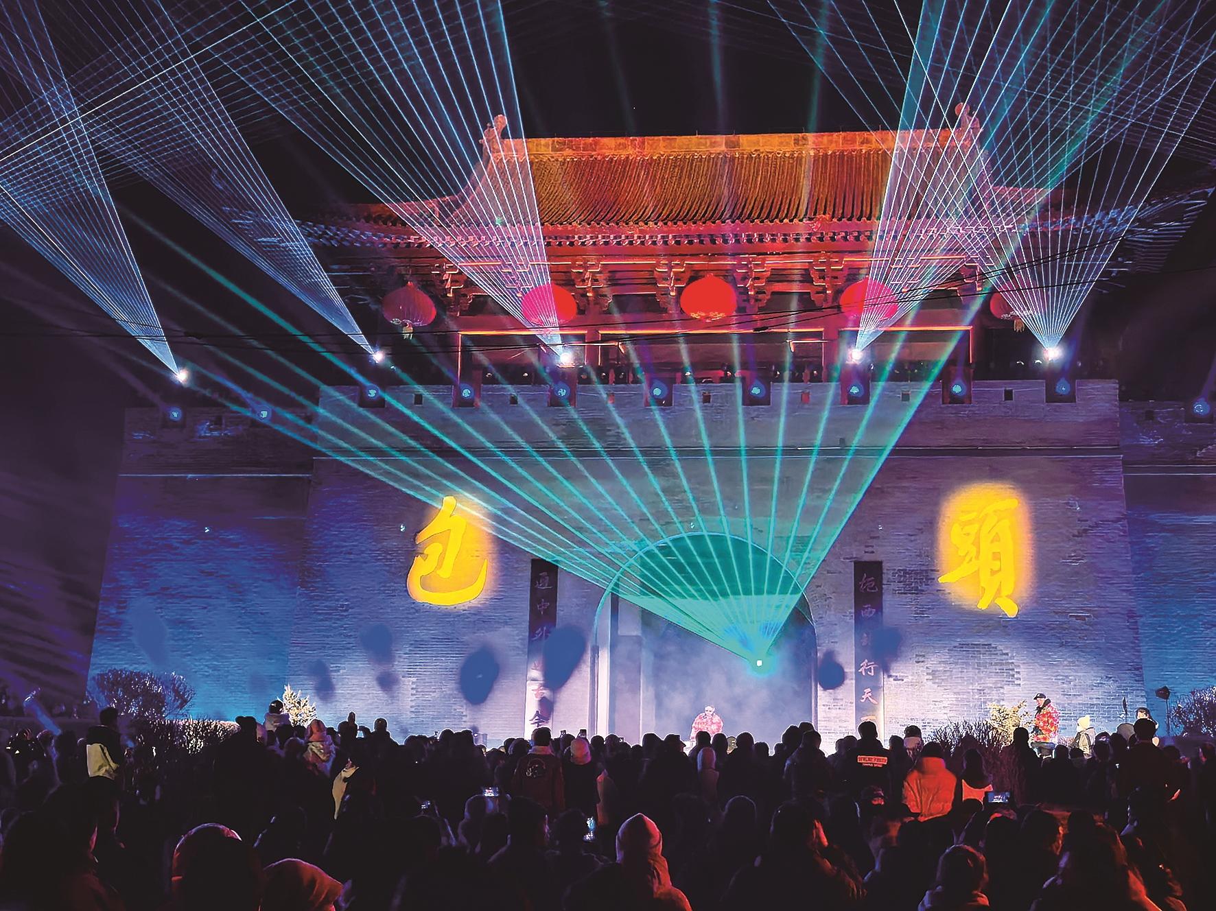元宵节当晚,老包头走西口历史文化街区在包头城楼举行了绚烂璀璨的“原点记忆”城楼光影秀。记者 张群群 摄