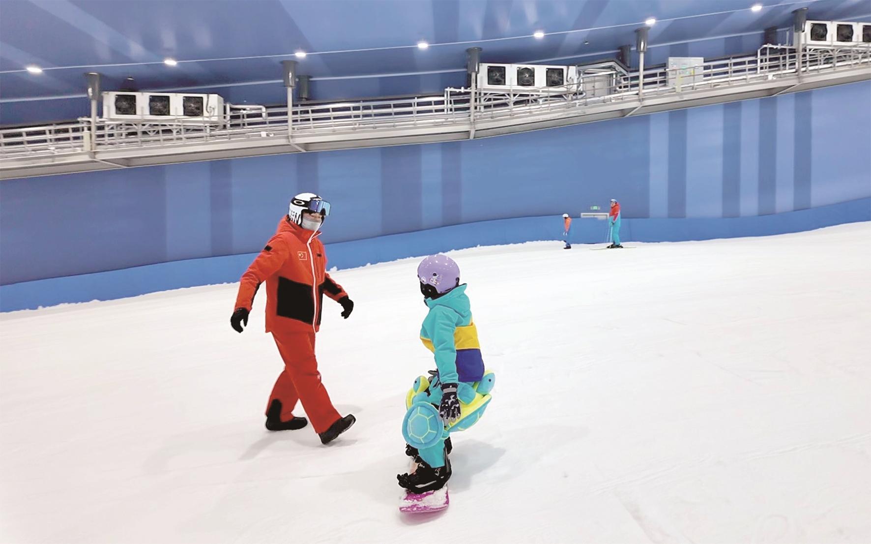 除了专业的赛道、赛场,冰雪中心还具备雪具售卖及餐饮等综合业态,可以满足大众休闲娱乐多种需求。“我们是带着孩子来的,给孩子请了专业教练,趁这个假期,为孩子再添一个技能!”市民张先生说,滑雪馆内还有肯德基和各种小吃,运动累了就在休息区吃点东西歇一会儿,特别方便!