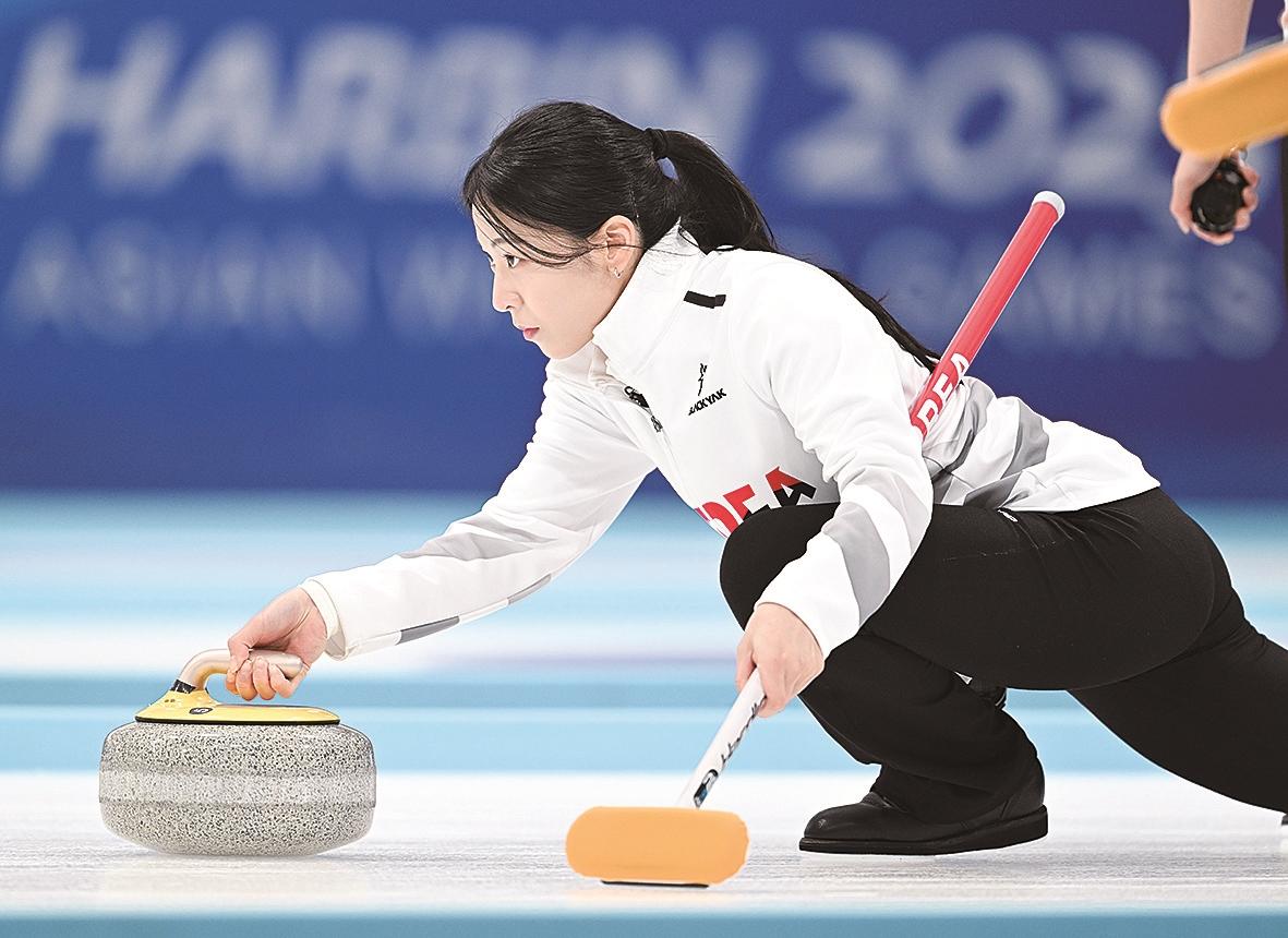 韩国队选手金敏姬在比赛中掷壶。 新华社记者 赵子硕 摄