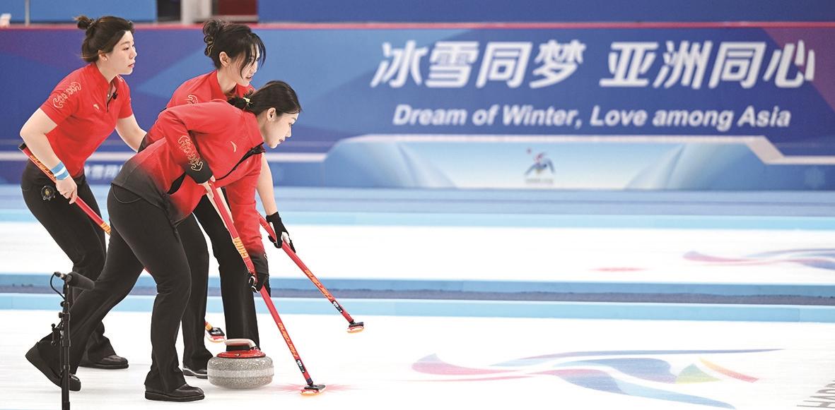 2月14日,在哈尔滨举行的第九届亚冬会冰壶女子金牌赛中,中国队对阵韩国队。经过角逐,中国队获得亚军。 新华社记者 李嘉南 摄