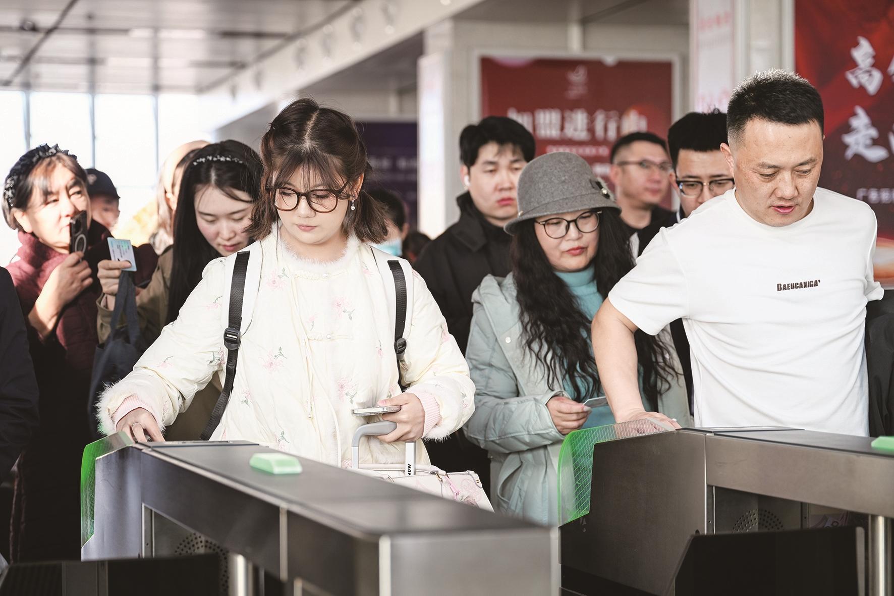 针对客流高峰时段,动态分析研判客流情况,及时增开进站安检、检票及出站通道。根据客流实际情况动态调整检票时间,并增加广播宣传频次,引导旅客有序进站乘车。记者在现场看到,尽管车站内人头攒动,但在工作人员的引导下,学生井然有序地排队等候,安检、检票等环节进行得十分顺畅。