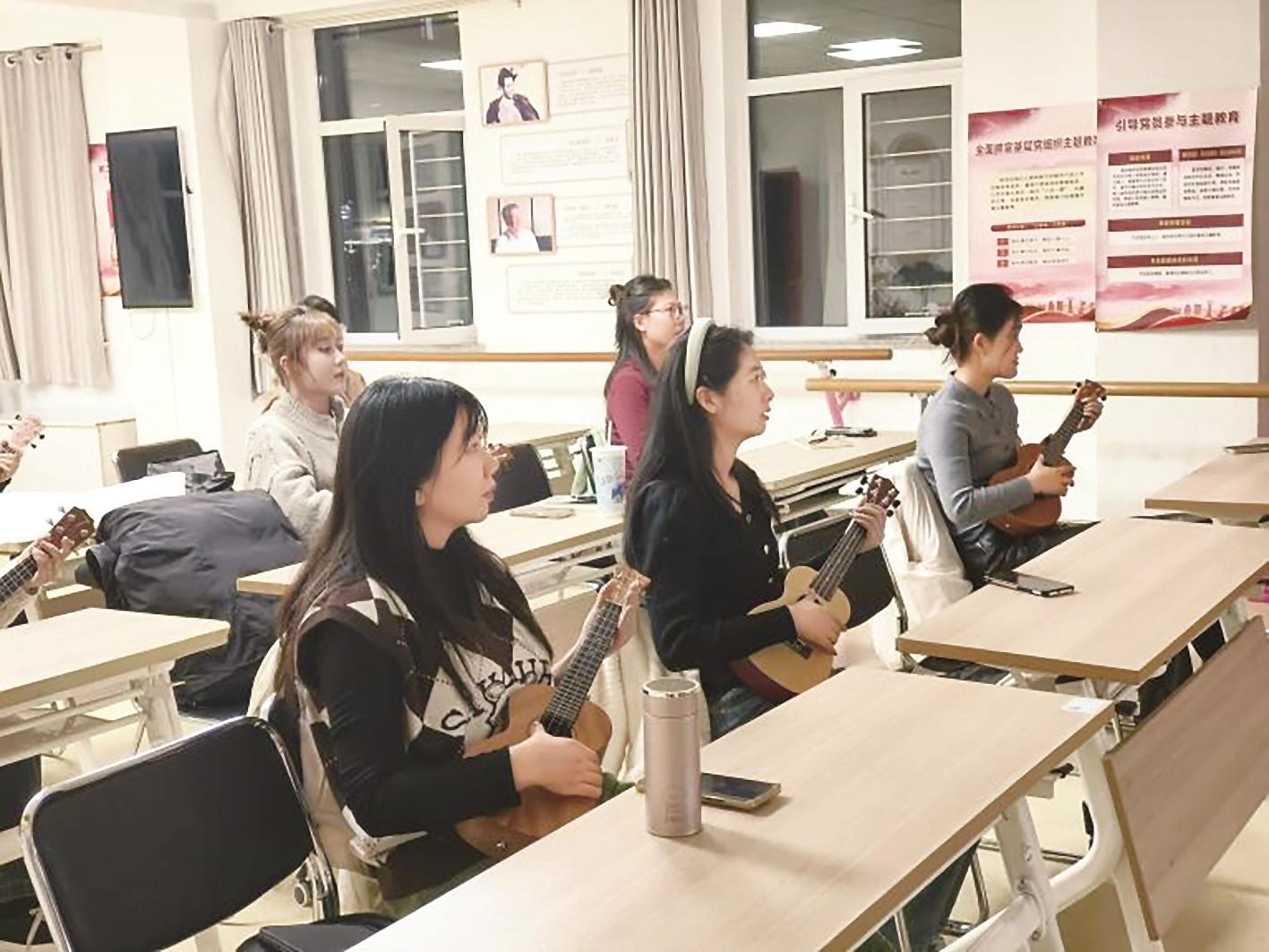 “自从夜校办起来,我们白天上班,晚上‘学艺’,业余时间充实了,学到好几个新技能,还收获了不少好朋友”,家住青六新苑的张莉和李然相约来上尤克里里课,“有时间就来上课,在家玩手机都变得索然无味”。