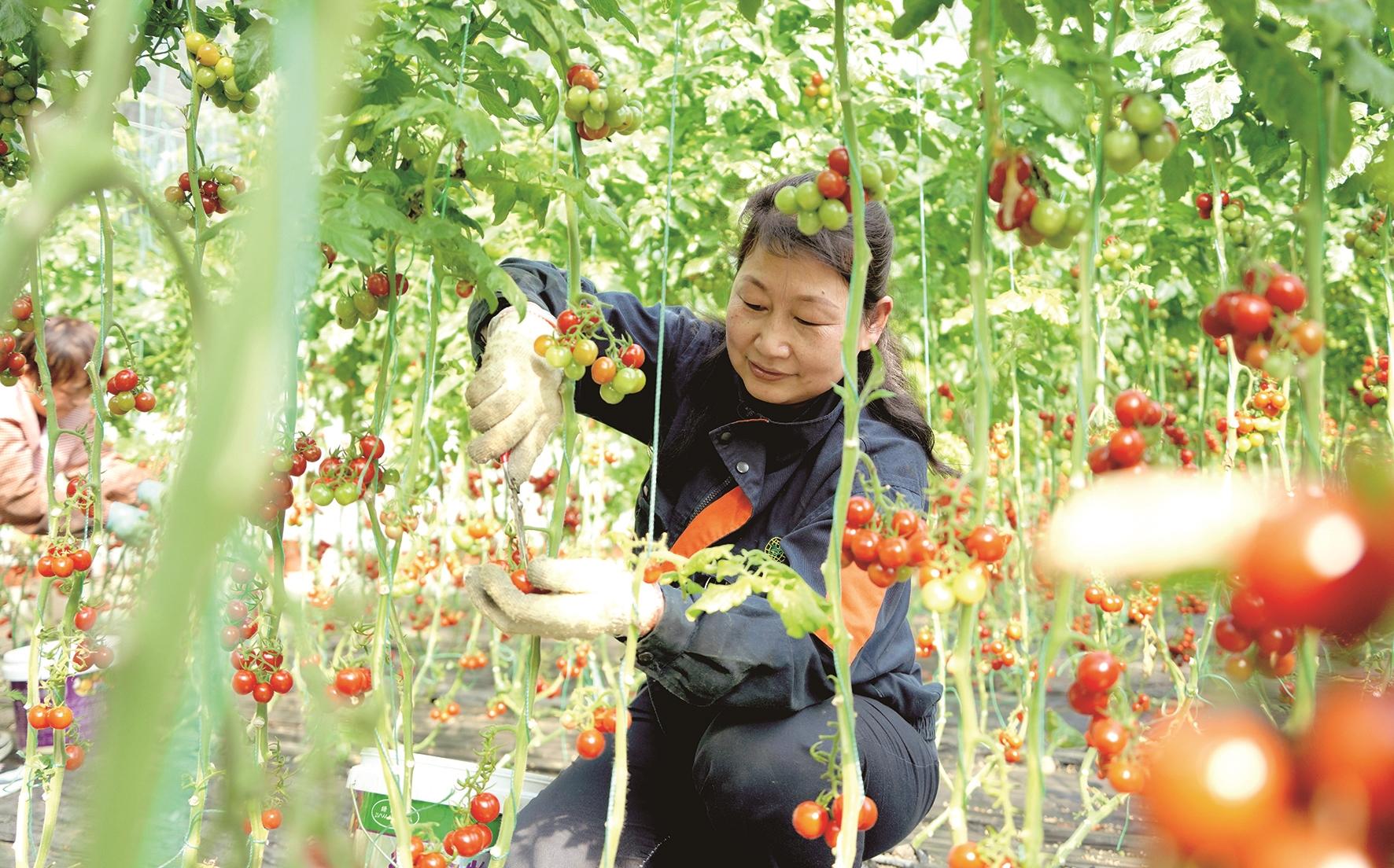 2月19日,在山东省潍坊市寒亭区前阙庄村,村民在收获西红柿。新华社记者 徐速绘 摄