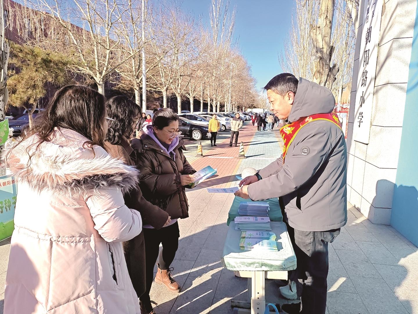 本报讯 2月23日清晨,市医疗保障局与青山区医疗保障局来到青山区朝阳路小学,开展城乡居民医保政策宣传活动,为辖区内中小学生家长介绍城乡居民医保政策内容、提供参保缴费帮助,进一步提高中小学生群体城乡居民医疗保险的参保率和覆盖率。