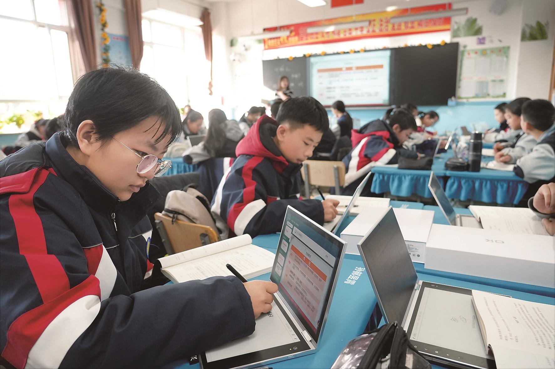 包头稀土高新区泰华OK智慧学校校长贾颖洲告诉记者,目前,除了音乐、体育、美术,学校其他课程都开启了AI教学模式,“课堂变化的背后,是人工智能对教学流程、教研体系和管理制度的整体重构。我们的目标是建成数字化教育全国标杆,走在教育‘云时代’的前端。”
