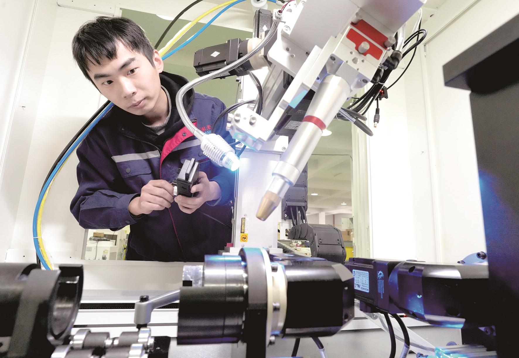 2025年1月7日,浙江省绍兴市上虞区浙江创新激光设备有限公司技术人员在调试四轴联动工作台激光焊接机。近年来,绍兴市上虞区积极发展新质生产力,专精特新企业培育成效显著,有效助力经济发展。新华社记者 翁忻旸 摄