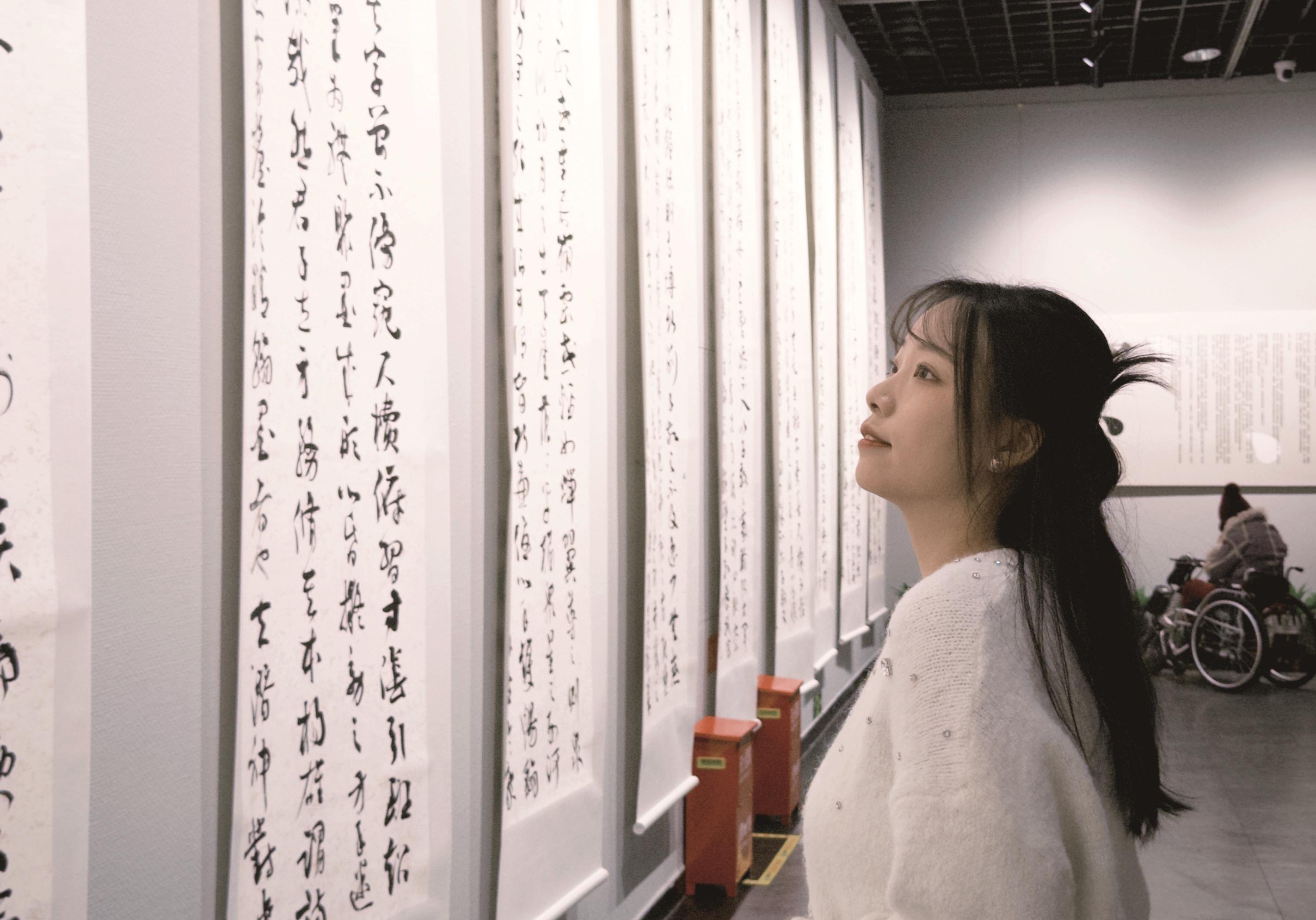 “该展览我们从去年就开始筹备,如今终于与广大市民见面,书法作为中华优秀传统文化有着良好的群众基础,前来看展的市民非常之多。”包头美术馆馆长苗景昌表示,随着AI、虚拟技术、数字艺术的不断发展,我们仍然需要静下心来思考如何学习传承中华优秀传统文化,希望观众们能从这些笔墨、经典文学作品中感受一些传统文化的回声。