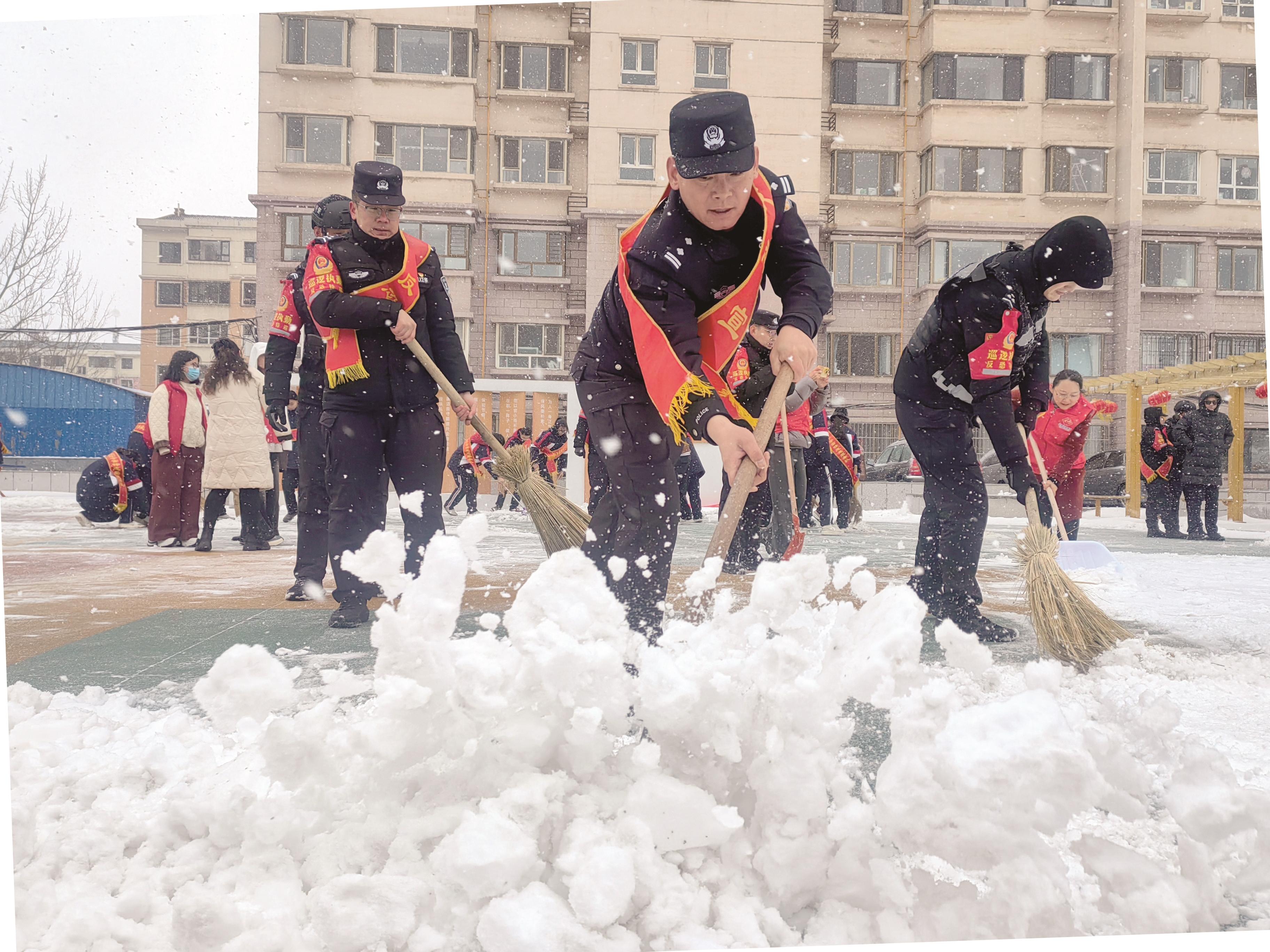 2025年学雷锋纪念日来临之际,九原区公安分局反恐怖和特巡警大队携手中国神华煤制油化工有限公司销售分公司青年志愿者,顶着纷飞大雪,联合开展学雷锋活动,为寒冷春日注入温暖力量。通讯员 吕博 摄