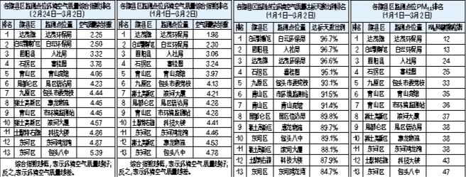 包头市各旗县区监测点位环境空气质量排名