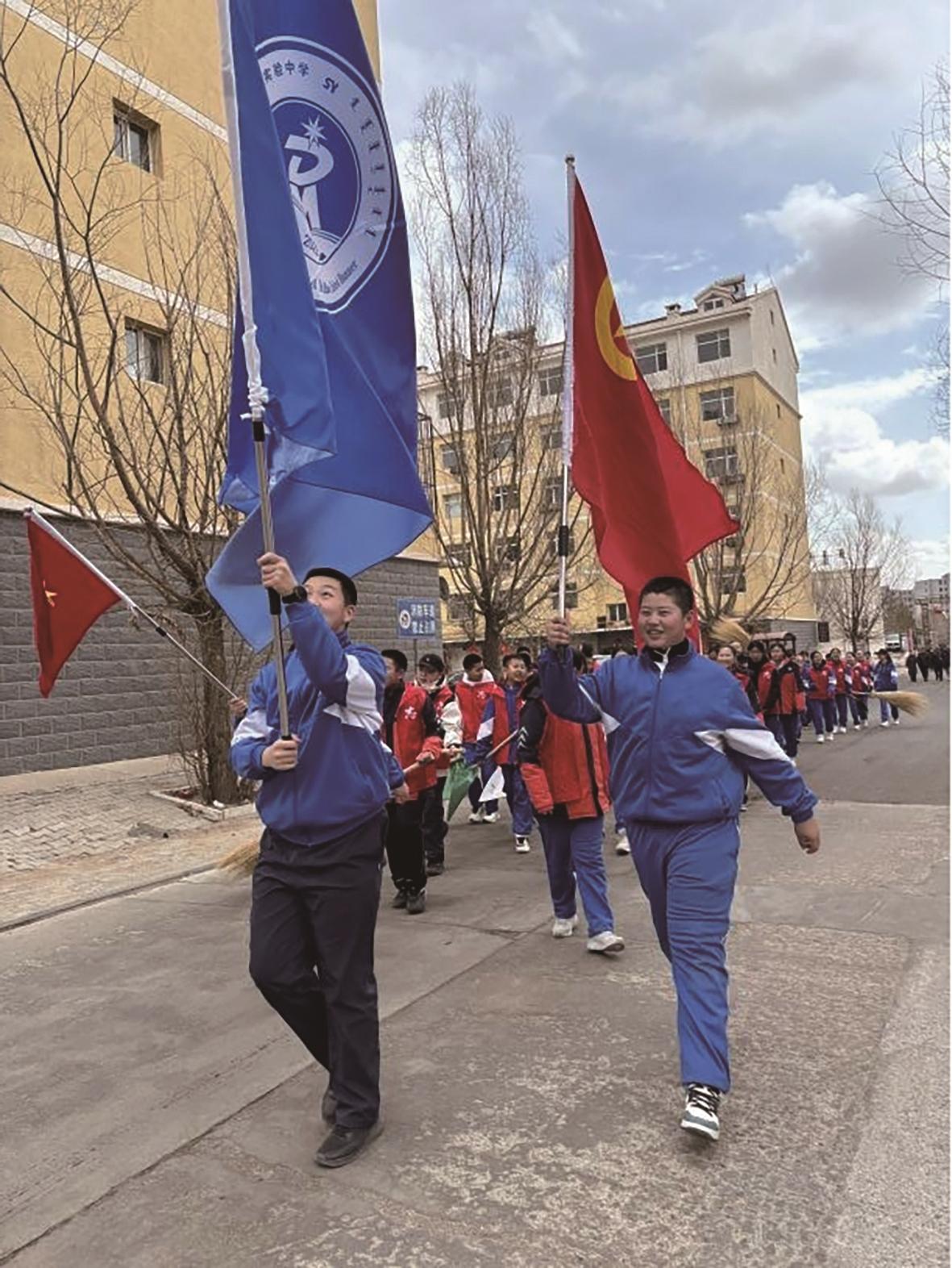 达茂旗实验中学学雷锋活动。
