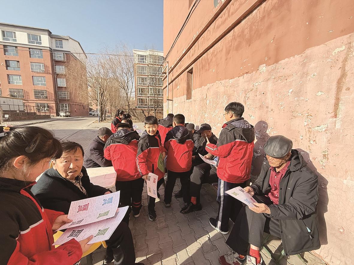固阳县团结巷小学开展“少年公益行动”进社区活动。