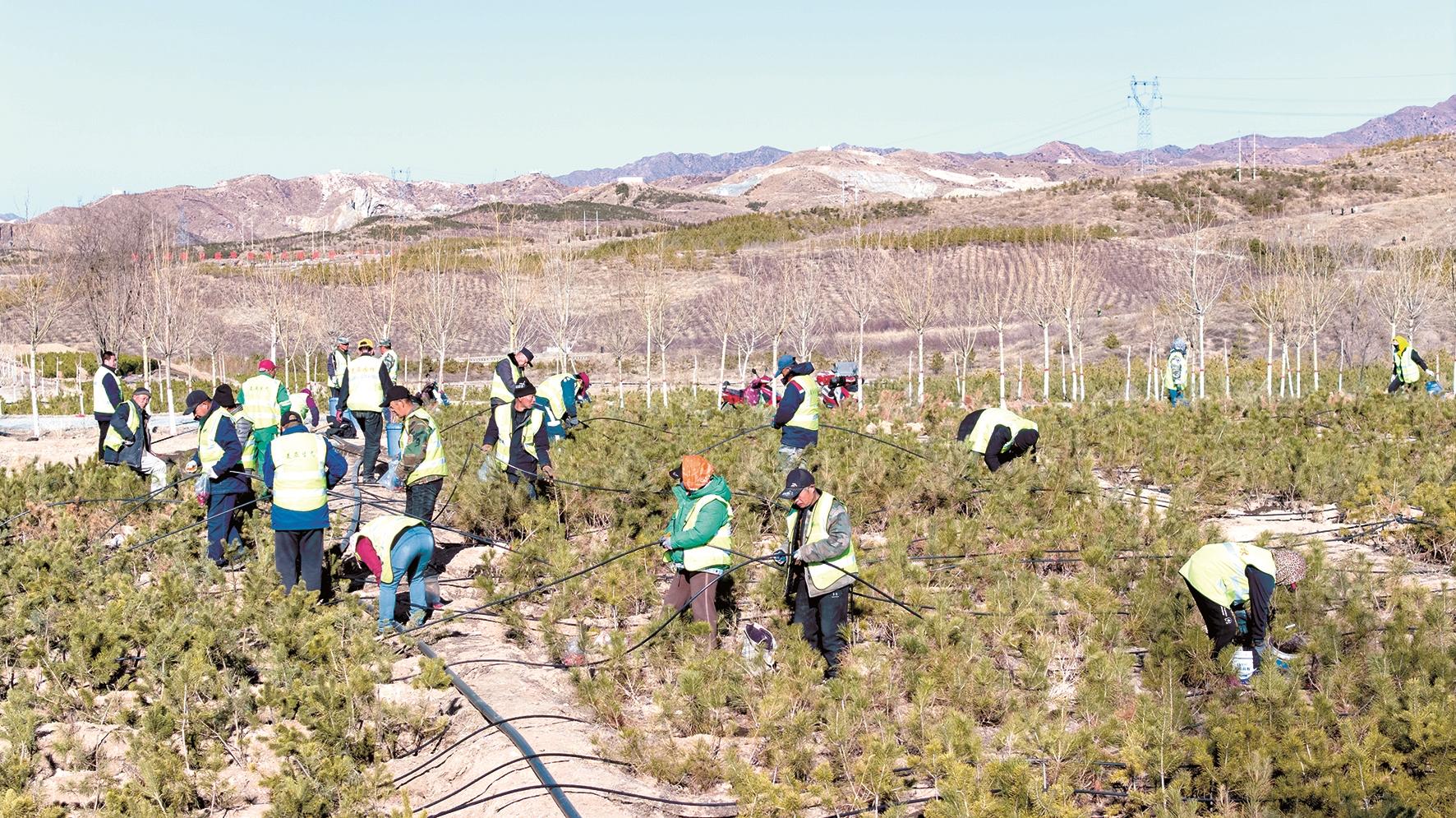 由东到西,从南向北,青苗绽翠,新绿生根。放眼包头“三北”工程各旗县区生态建设现场,处处呈现出一片热火朝天的繁忙景象。苗木搬运、打孔、树苗栽种、填土围堰、浇水,人力与机械互相协作,科技与创新相得益彰。