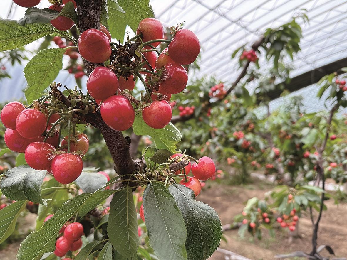 活动中,莎木佳村被市农牧局授予“包头市樱桃第一村”。包头市润泽园农业科技农民专业合作社理事长张胜利介绍:“2017年我们去大连考察后开始尝试在温室里种植樱桃树,到目前已经建设有30亩温室大棚,棚内有1000多株大樱桃树和1万多株小樱桃树。近年来我们通过采用新的种植方法和智能温室大棚,樱桃产量目前已经可以达到4万斤,我们种植的美国红和俄罗斯8号在参加国内评比时还获得了‘优质’档次,口感、外形、甜度等多方面都获得了专业人士的一致认可。”