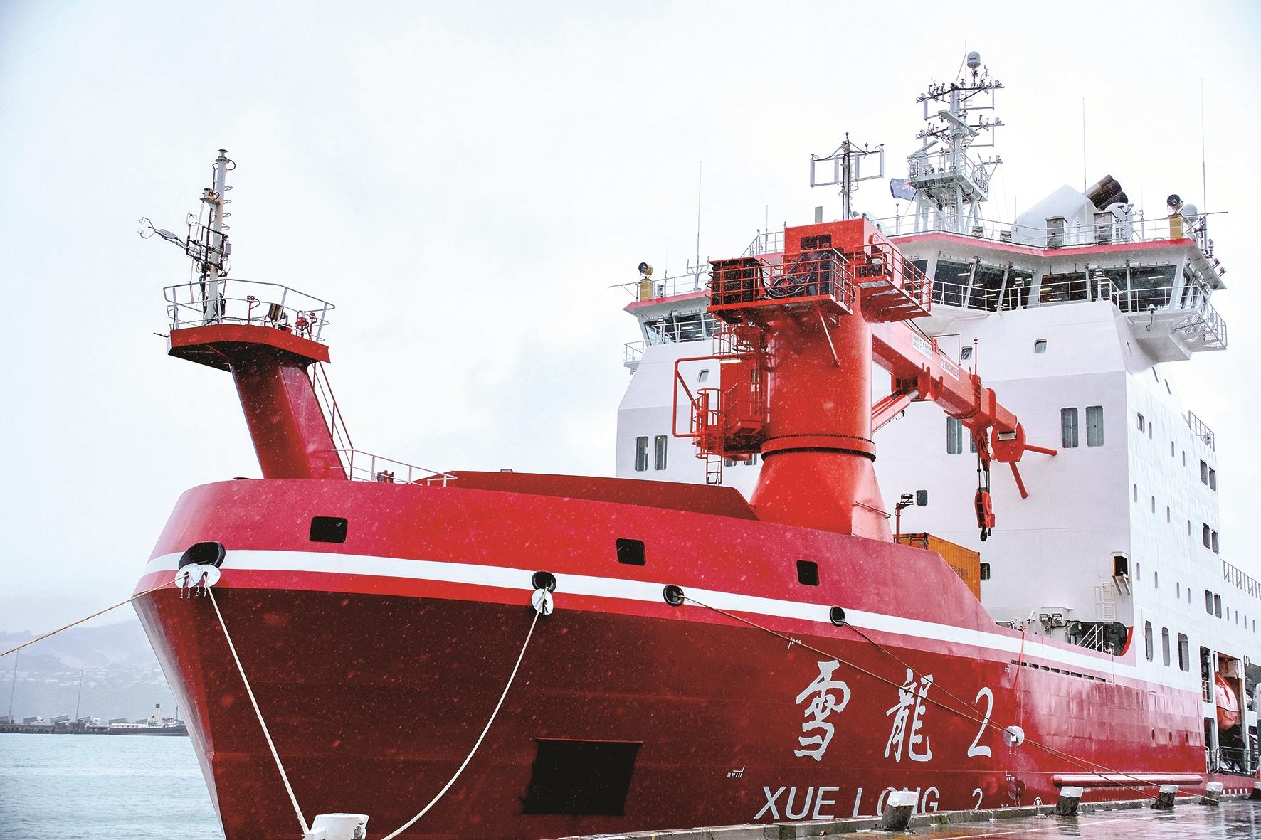 这是3月18日拍摄的停靠在新西兰克赖斯特彻奇市利特尔顿港的“雪龙2”号。