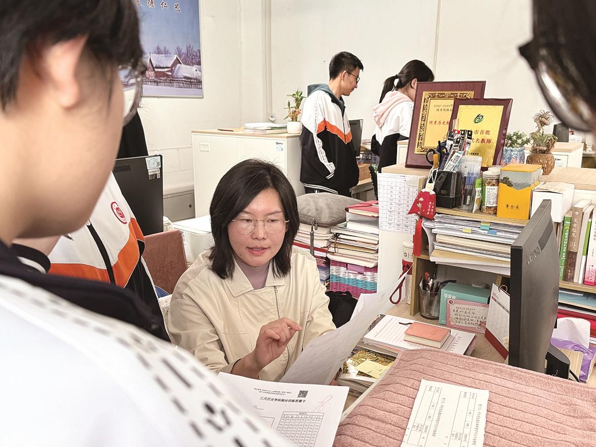 采访当天的课间,一下课崔红的办公室里就涌入了来提问的学生。崔红根据每个人不同的学情,有针对性地给予建议,在关心学生学习表现的同时,也关心学生的成长。