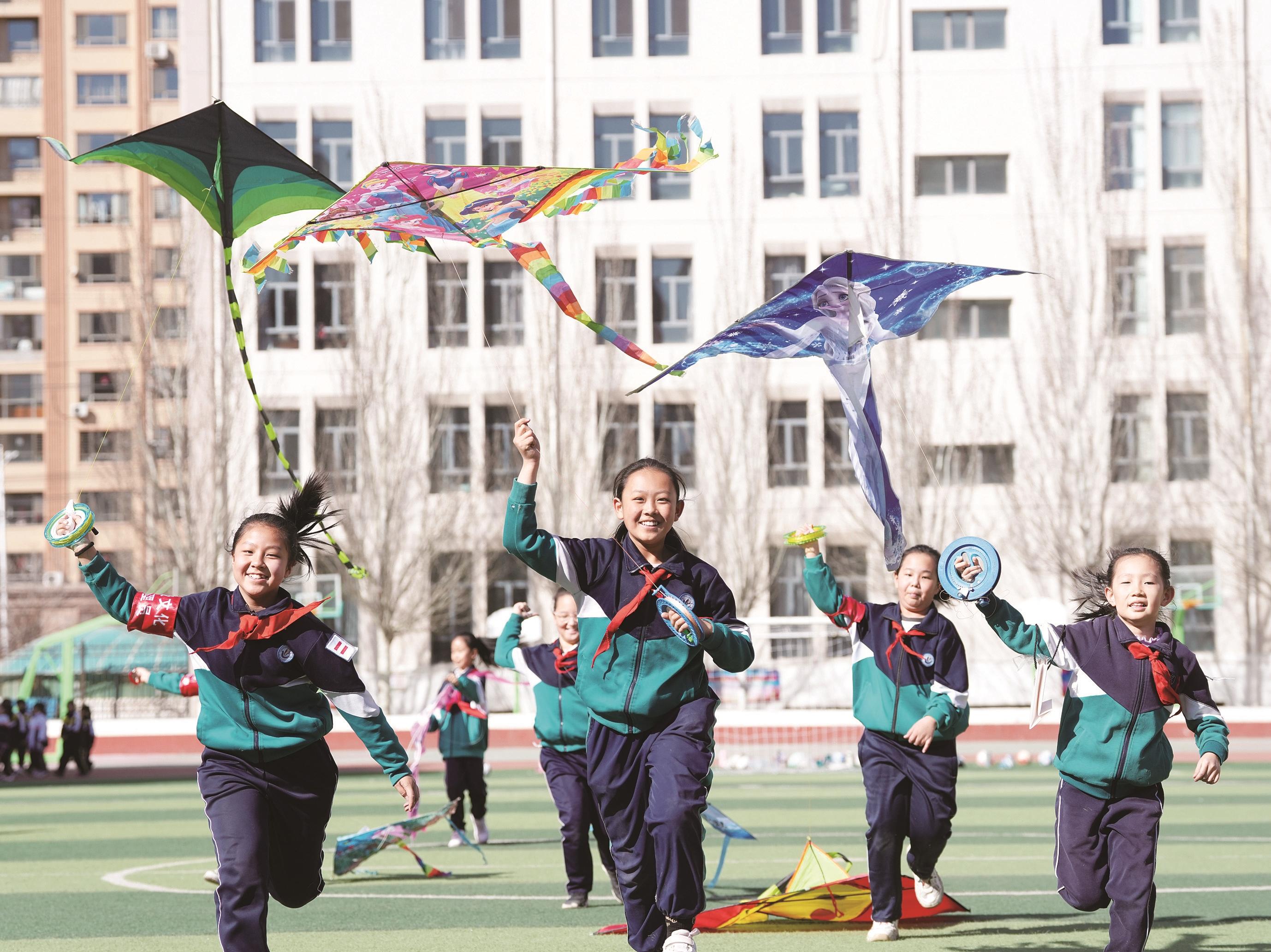 春光和煦,内蒙古科技大学实验小学的操场上热闹非凡。湛蓝天空下,纸鸢高飞。孩子们手中紧握着风筝线,奔跑着、欢笑着,脸上洋溢着开心与幸福的笑容,同时感受着春光的温暖与美好。记者 李强 摄