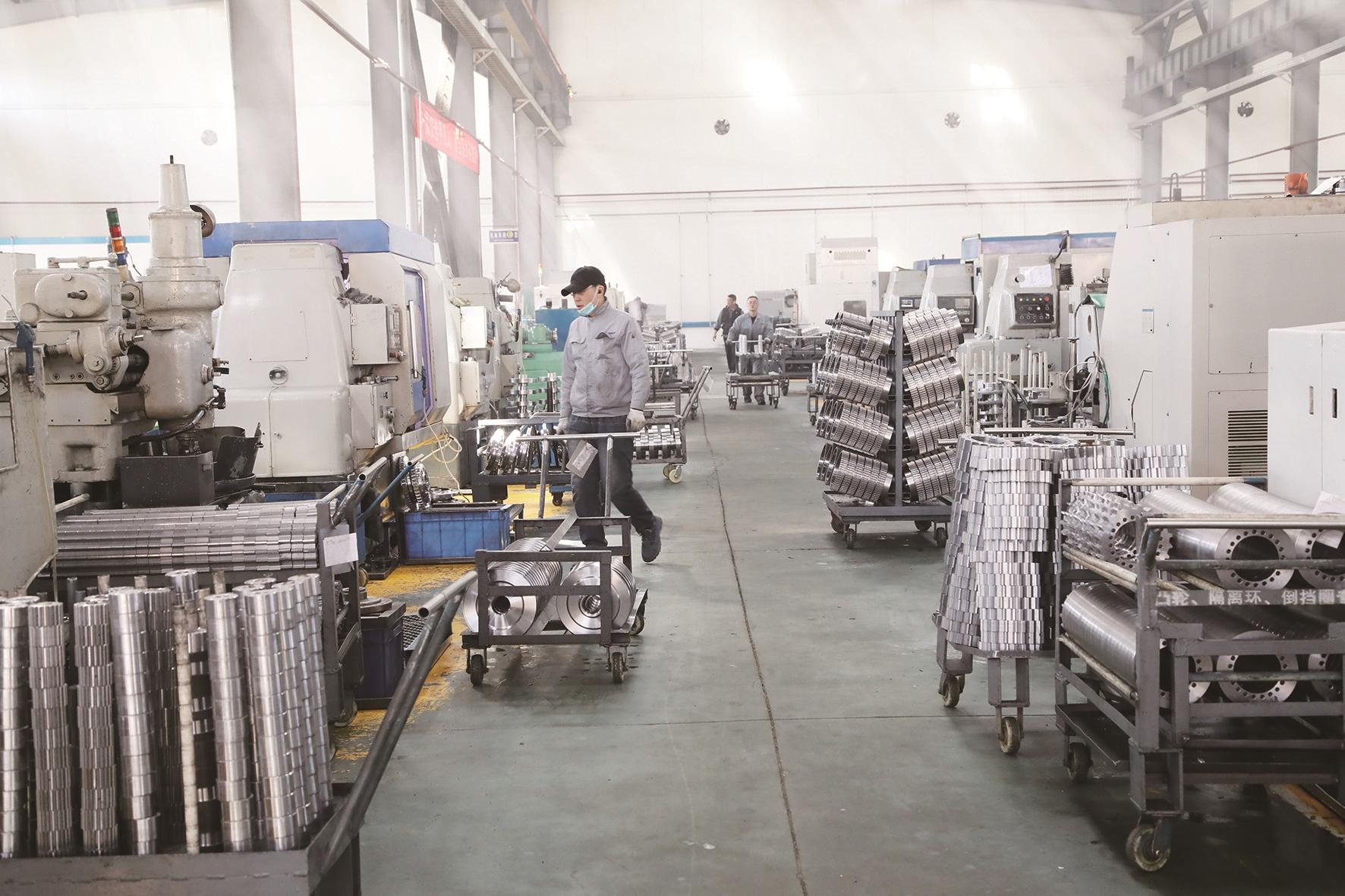跟随张洪祥的脚步,记者走进了占地10000余平方米的蓝光齿轮生产车间,只见宽大的车间内,机械加工、热处理加工、包装成品线等生产线干净整洁、井然有序,数控车床,铣床、磨床、数控插齿机、数控拉齿机、数控蜗杆砂轮磨齿机、数控热处理炉等220余台套国内外先进高精齿轮生产设备及检测设备正在高效运转,一批即将发往山东临工集团的“稀土磁力型超越离合器”正在贴签赋码,进入验收、包装环节。