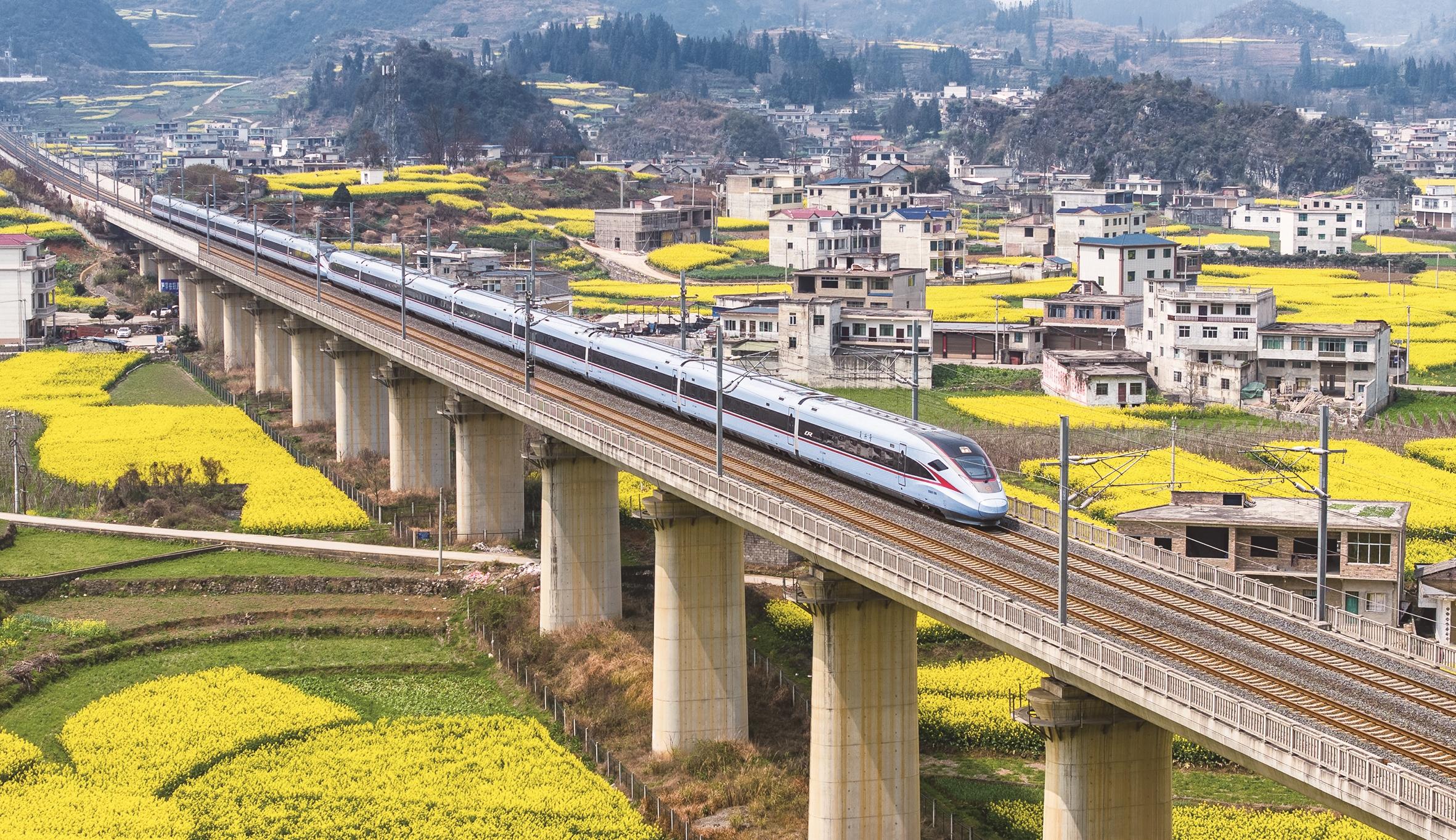 仲春时节,贵州省多地油菜花竞相绽放。一趟趟列车在油菜花海之中穿行,勾勒出黔贵大地朝气蓬勃的春日景象。新华社记者 陶亮 摄
