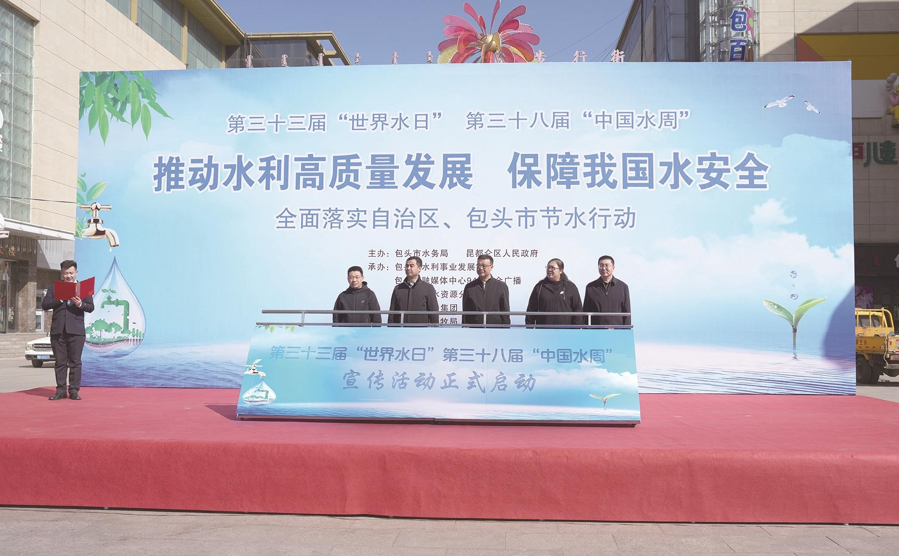 3月22日上午,市水务局和昆区政府在包百步行街联合举办了第三十三届“世界水日”和第三十八届“中国水周”宣传活动启动仪式。本次宣传活动以“推动水利高质量发展 保障我国水安全”为主题,旨在增强全社会节水意识,推动水利事业高质量发展。