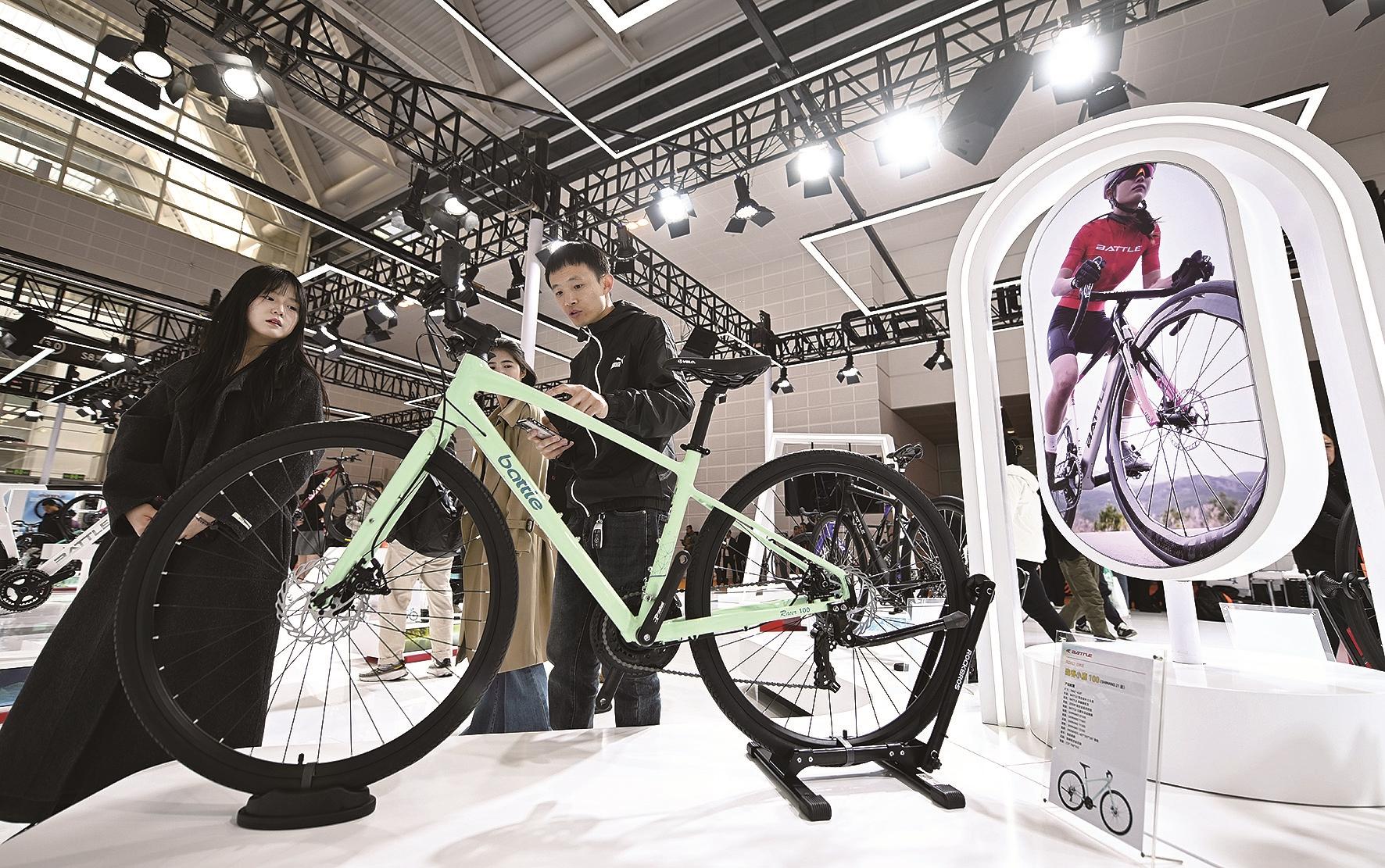 当日,第二十三届中国北方国际自行车电动车展览会在国家会展中心(天津)开幕。本届展会以“新质、绿色、时尚、安全”为主题,超过800家参展单位围绕行业科技创新、国际合作交流、骑行文化推广以及以旧换新政策带来一批行业新成果和新产品,总展出面积达10万平方米,展会将持续至3月30日。新华社记者 赵子硕 摄