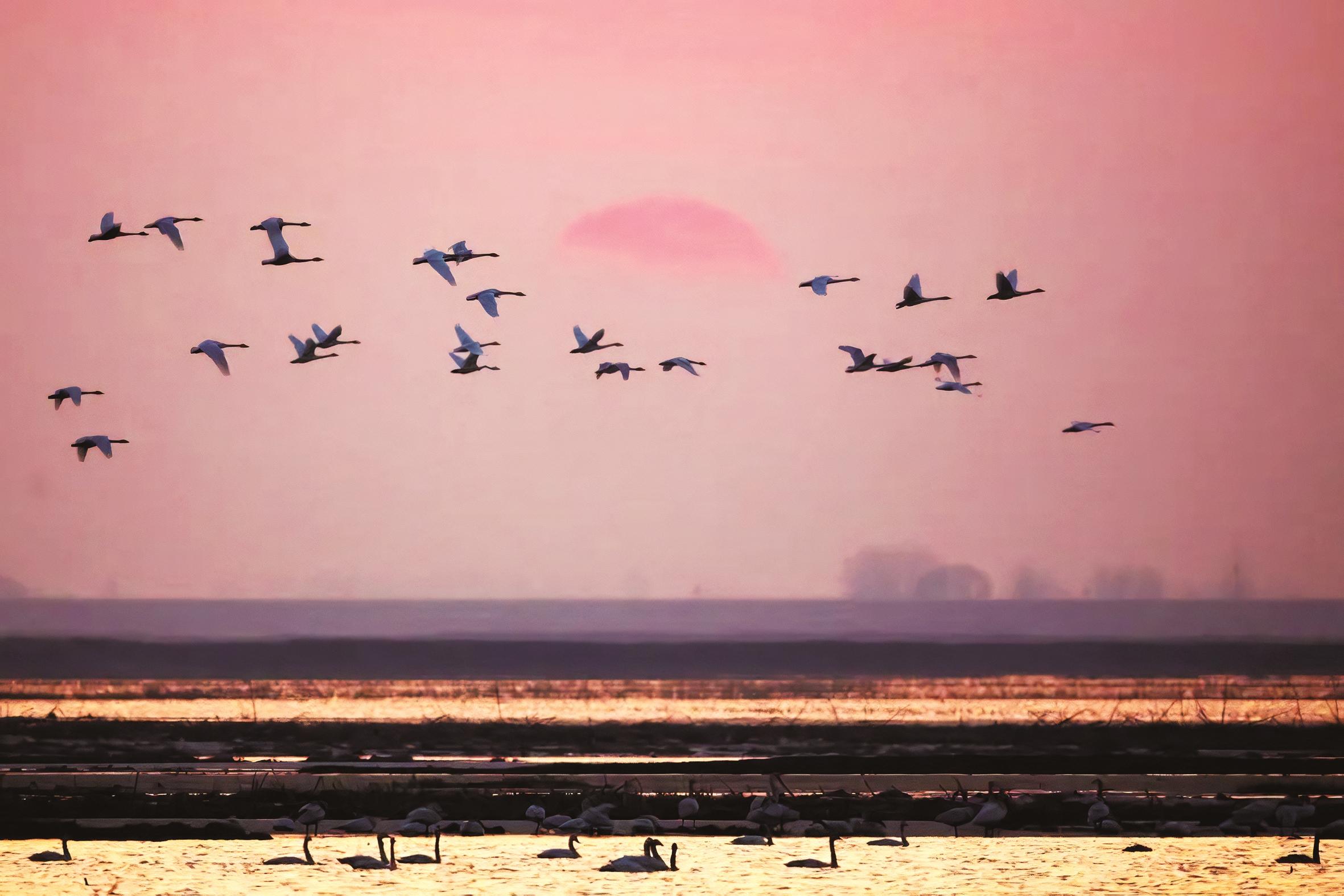 包头黄河湿地,天鹅如约归来。夕阳中,这群白色精灵舒展修长的脖颈,在波光粼粼的水面划出优美弧线。它们时而凌空振翅,在天幕下编织流动的云锦;时而交颈缠绵,将倒影融入芦苇编织的金色画框。摄影师们早已架起长焦镜头,将这份北疆春季独有的浪漫定格成永恒。是时候到包头,赴一场与天鹅的春日之约。