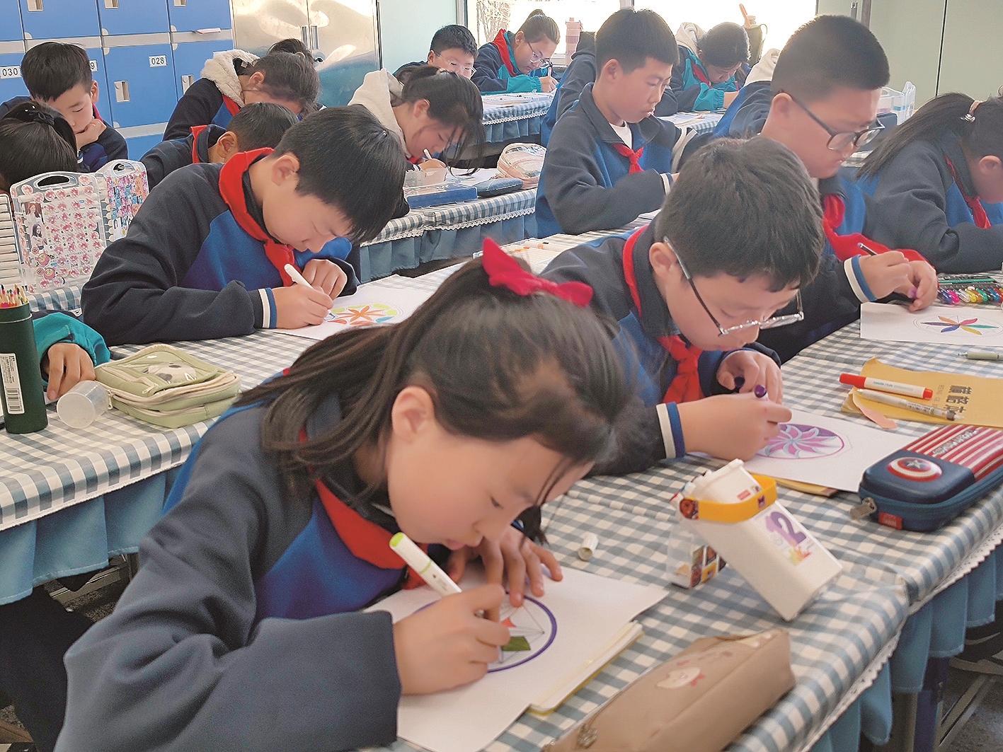 在互助道小学“幸福能量杯”活动中,三四年级学生在特制杯形画纸上,将学习生活中令人感动的温暖瞬间绘制出来,学会在生活中积累积极心理能量;针对高年级学生设计了曼陀罗心理课程,伴随舒缓的音乐,让学生在放松的心情下体察自己的内心,把情绪和压力想象成各种图案、各种颜色并绘制出来,帮助孩子掌握用色彩和图形调节情绪的方法。