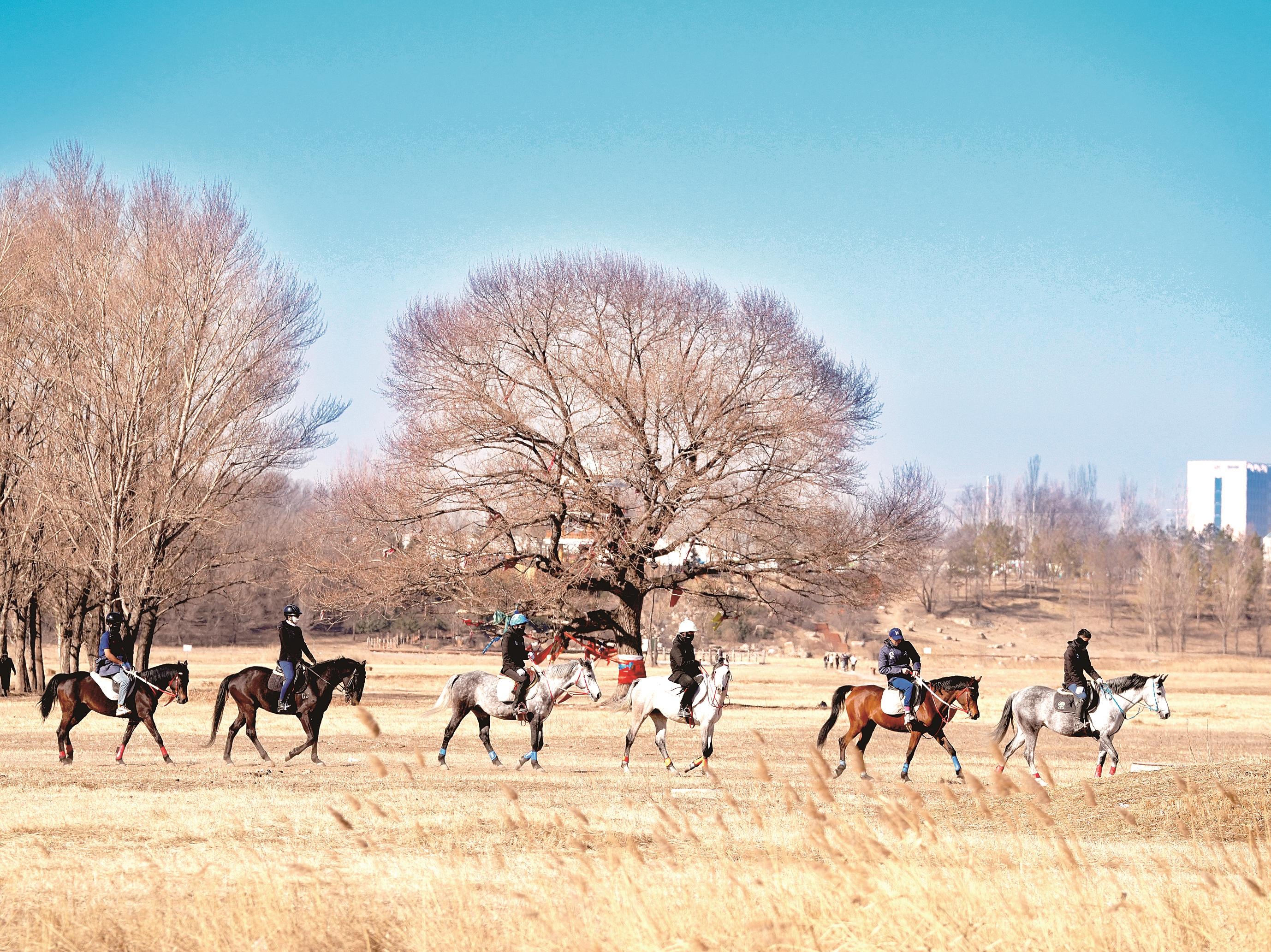 春回大地,万物复苏。人们走出家门,奔赴大自然。在赛汗塔拉城中草原,市民游客骑着马儿享受春日的惬意与美好。记者 李强 摄