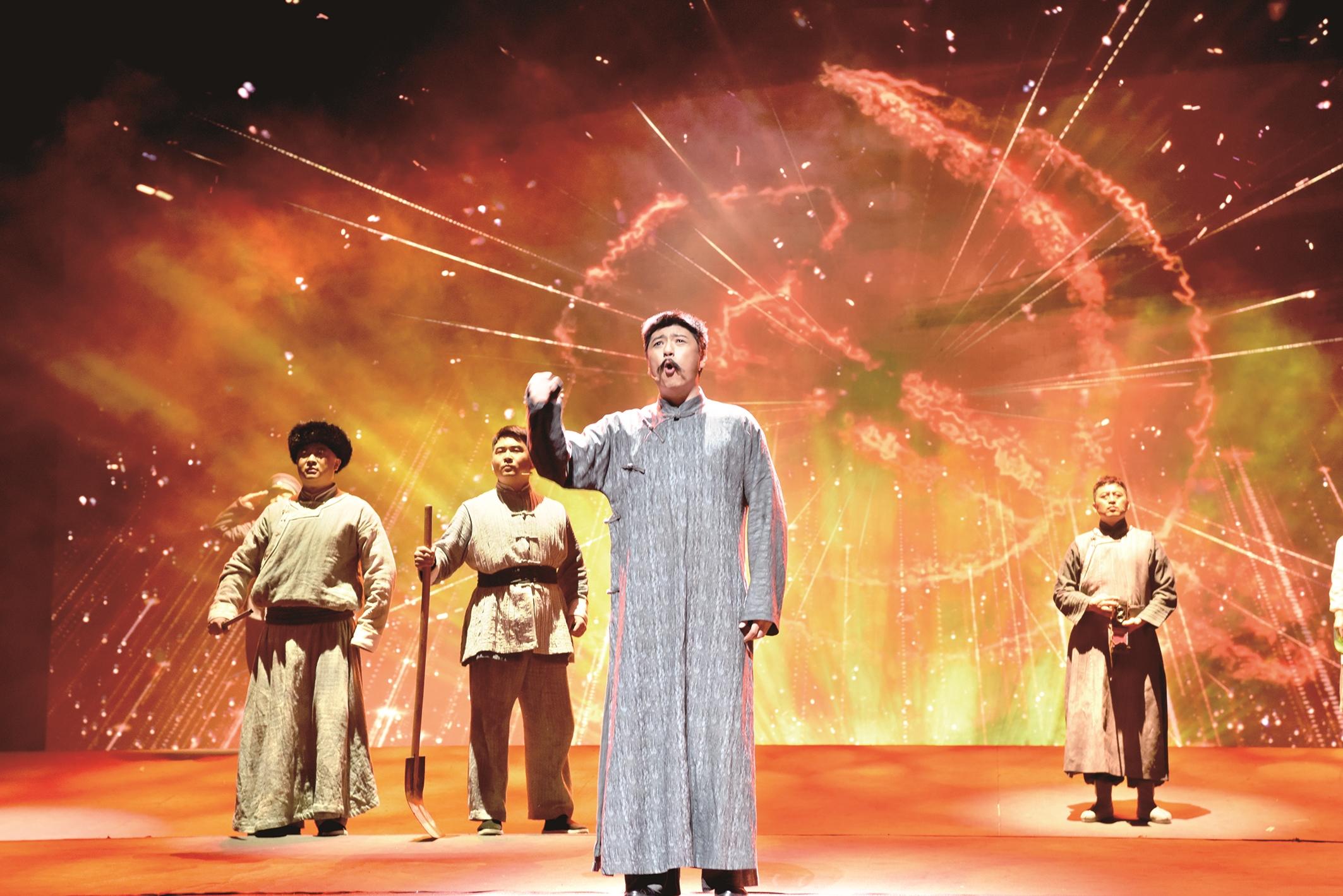 “哥,我要读书。”“知识可以改变命运。”当小虎向兄长表达自己对读书的渴望时,当云泽、多松年一众青年学子振臂高呼时,台下刚才还好奇于舞台上各种移动装置的学生们,此刻都屏息凝神专注地看着台上演员。“这是我印象最深的一场戏,这一刻我们仿佛与革命先辈同频共振,我将继续传承红色基因,赓续红色血脉,努力成为一个堪当时代重任的新青年。”中央民族大学附属中学呼和浩特分校学生赵子豪说。