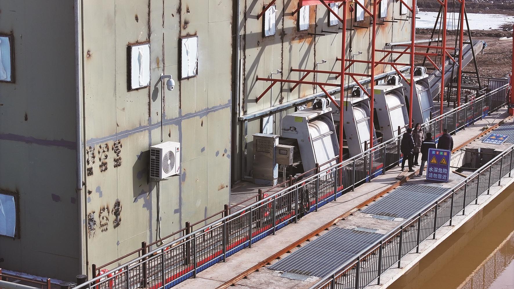 浮船泵站不同于传统固定式泵站,无须建造建筑物,大幅降低投资成本。泵船采用先进的模块化生产,安装快捷,可有效缩短建设工期。生产过程采用自动控制系统,一键启停、操作简便。泵船进水口位于水面以下1.8米,配备4个大型万向节,能随水位自动升降,可灵活适应水位涨落,确保取到杂质较少的黄河水,且取水能力不受影响。这些优势极大地提升了城市供水的质量、效率与可靠性,既保障泵船全天候正常运行,又维持河道行洪的畅通无阻。