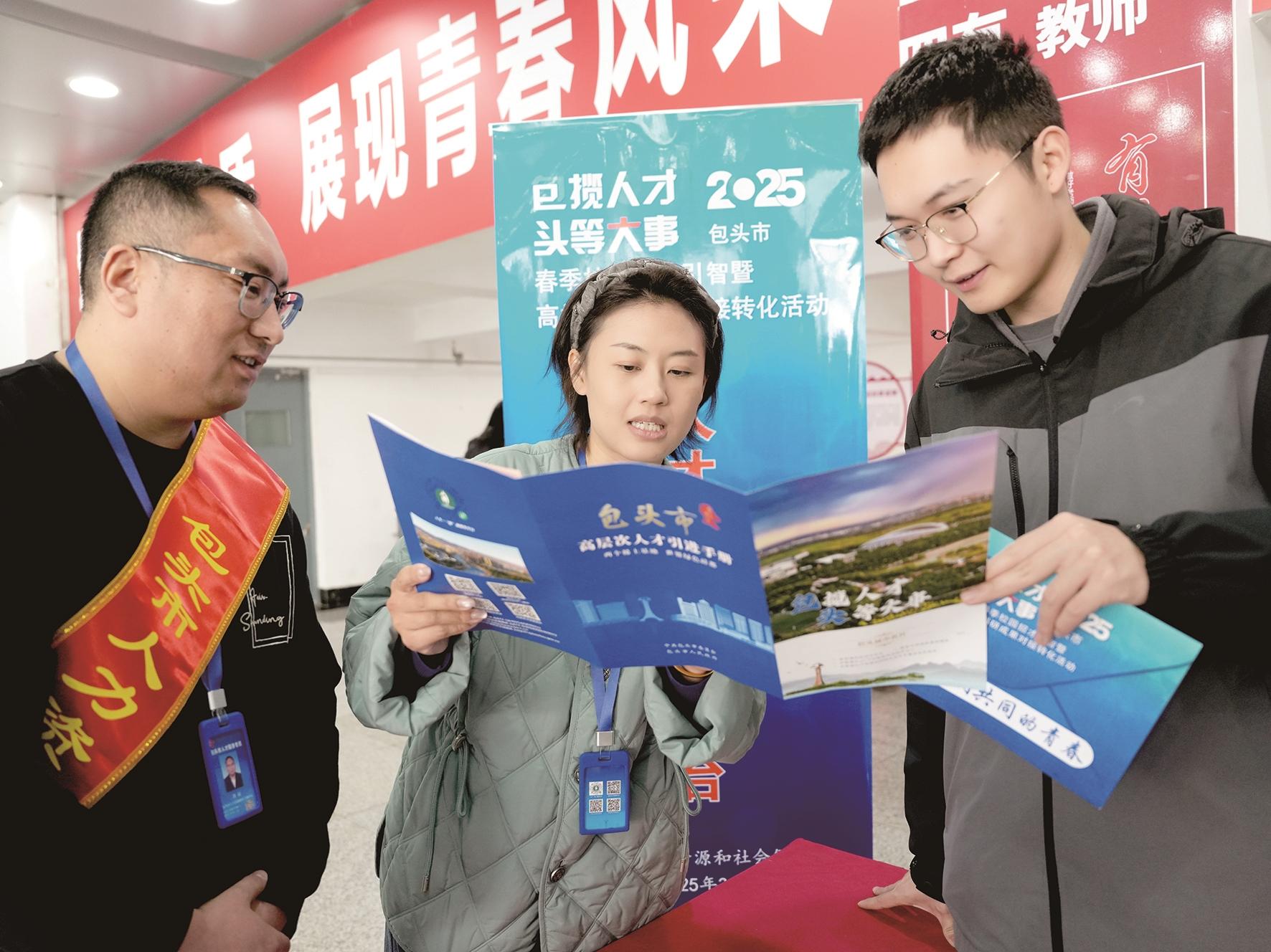 “政策吸引人才、环境适宜人才。”内蒙古大学博士研究生邰洪波说,今年毕业的他已经在前期和驻包高校、科研院所进行对接,包头对人才在事业上、生活上的政策保障和贴心服务吸引力大,希望在毕业后能到包头安家立业,开始新的生活。