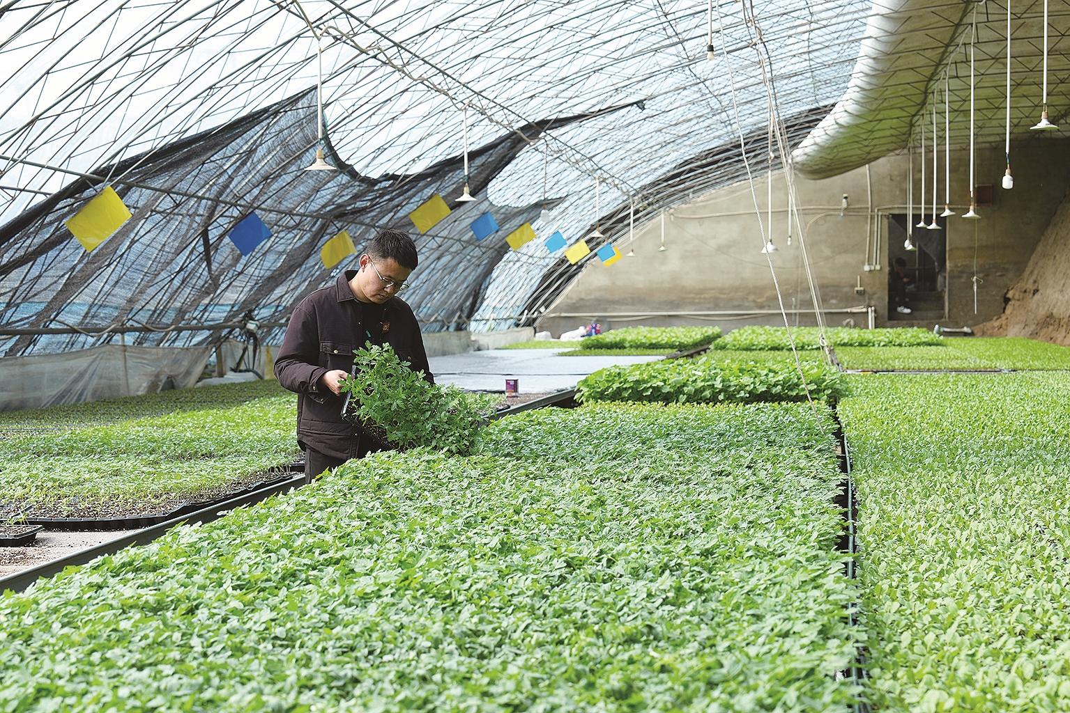 来到内蒙古华鹿现代农业发展有限公司的育苗中心,精量化播种机正以每小时1000盘的速度播撒希望。内蒙古华鹿现代农业发展有限公司育苗配送部经理胡彪站在流水线旁介绍:“它的效率是人工的15倍,播种精准度达97%。”向一片片育苗床望去,片片嫩叶在阳光下茁壮生长,它们将被送往800多户合作农户手中。这座占地百亩的工厂化育苗中心,年育苗量达1.2亿株,可满足4.5万亩蔬菜种植需求。“我们育的是优质种苗,更是农户增收的信心。”胡彪说。