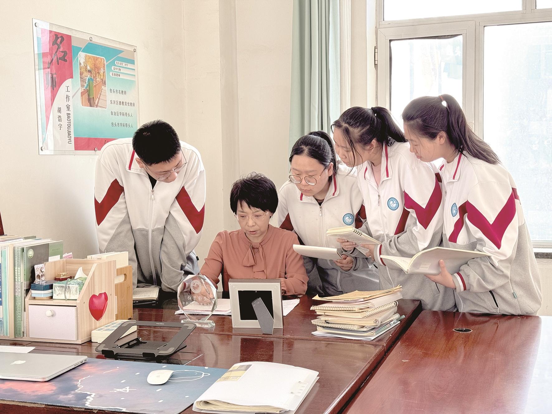“对我们来说,胡老师更像是朋友,是我们取得优异成绩时第一时间想告诉的人,更是我们遇到困难时第一时间想到的倾诉对象。”包头市第二中学高三年级学生张靓仪说,“在课堂上,胡老师用专业的讲解引领我们走进了生物的世界,用生动有趣的例子帮助我们理解和掌握知识,她引导我们独立思考,培养我们解决问题的能力,就像一盏智慧的明灯,点亮了我们求学的道路。”