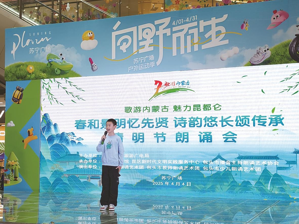 4月4日,“歌游内蒙古 魅力昆都仑”“春和景明忆先贤 诗韵悠长颂传承”清明朗诵会在苏宁广场成功举办。活动以诗词为媒、以声传情,带领观众穿越千年文脉,感悟家国情怀,传承红色基因。