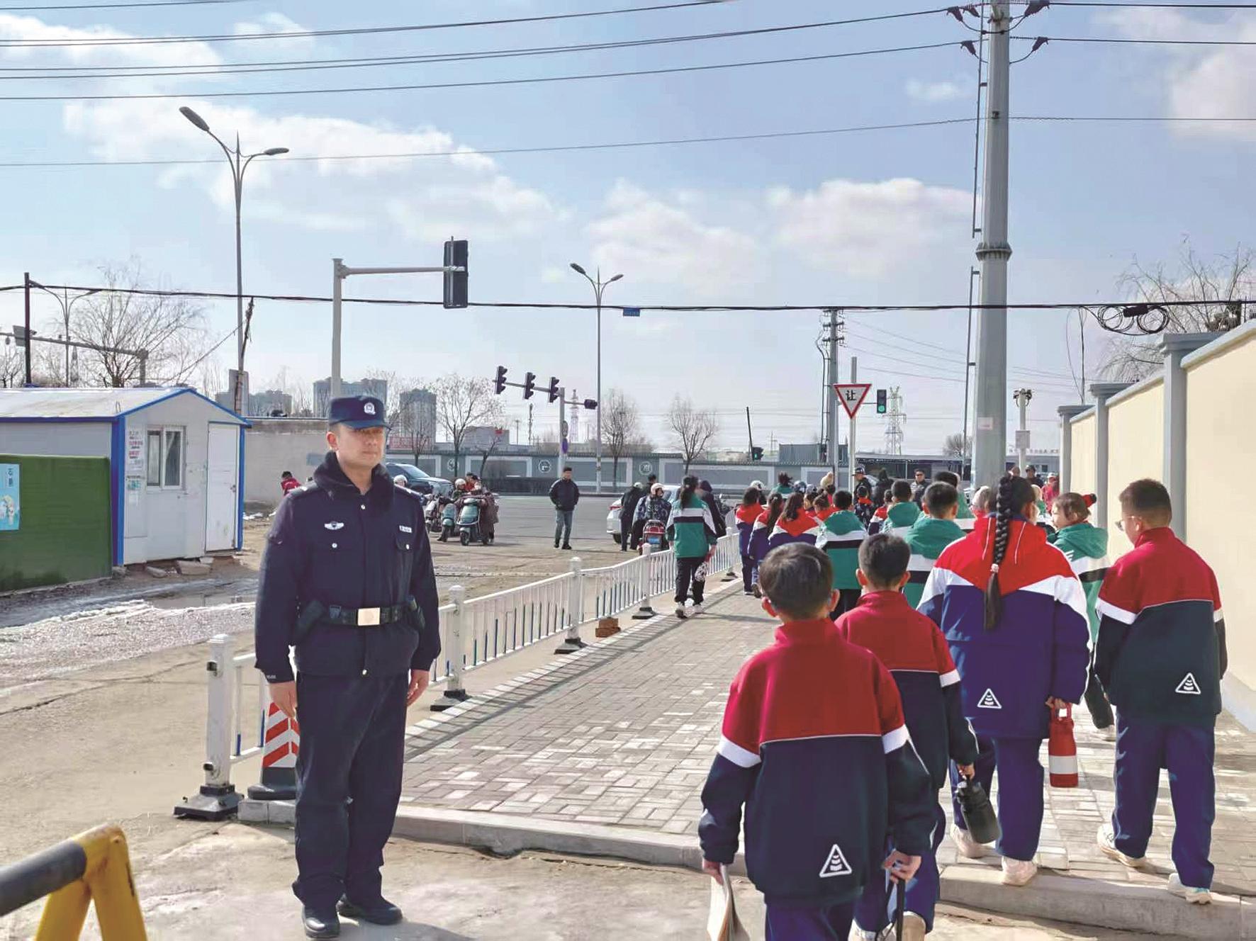 本报讯 “同学们,放学路上注意安全,不要到马路上追逐打闹!”“家长接送时请有序停车。”近日,在九原区二道沙河小学门口,九原区公安分局知行路派出所民警一边执勤,一边向学生和家长反复叮嘱安全事项。