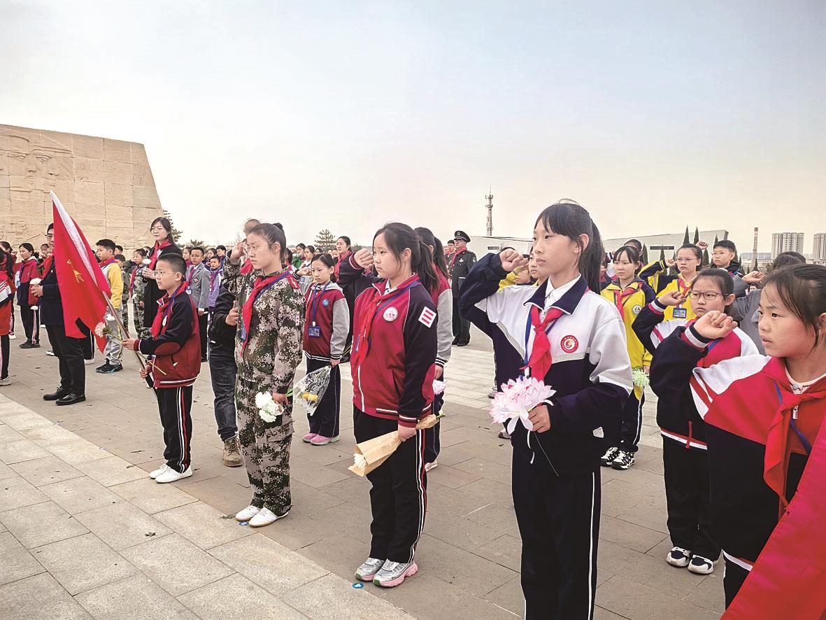 当天,九原区世纪路第一小学、东河区公园路小学教育集团、东河区第一中学、稀土高新区万水泉中心小学、包头市第二十四中学、包头市第五十三中学的师生,也一同在包头市革命烈士纪念公园开展了思政教育实践活动。“我们今天的幸福生活是革命先烈用鲜血换来的。”稀土高新区万水泉中心小学同学们在参加完祭扫活动后纷纷表示,今后要好好学习,将来报效祖国,不辜负先烈们的期望。