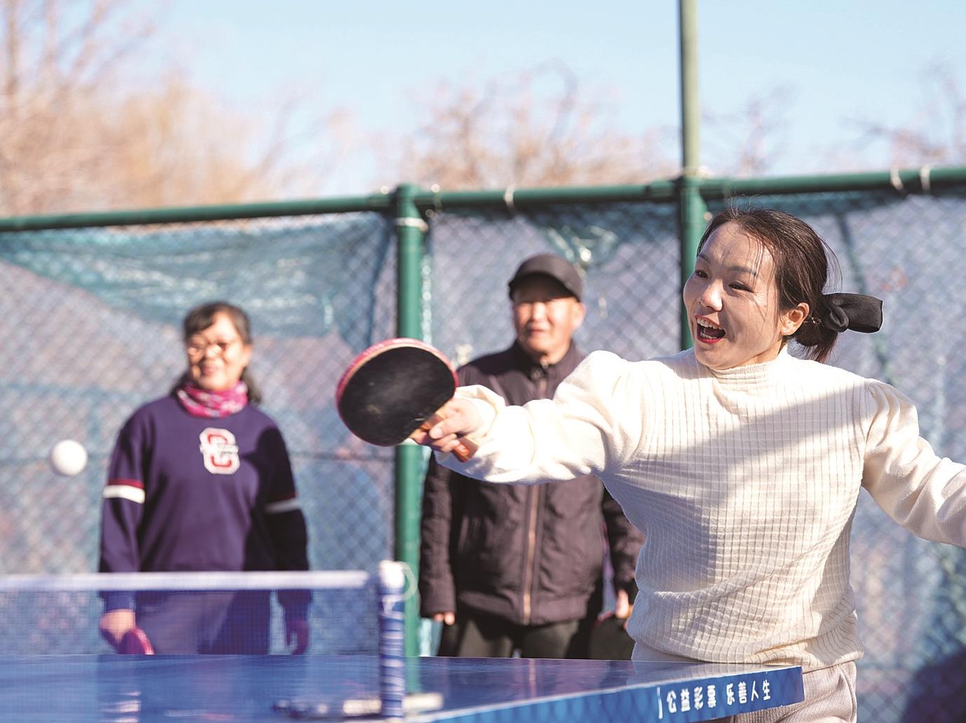 乒乓球台旁,爱好者挥汗如雨,尽情释放活力。