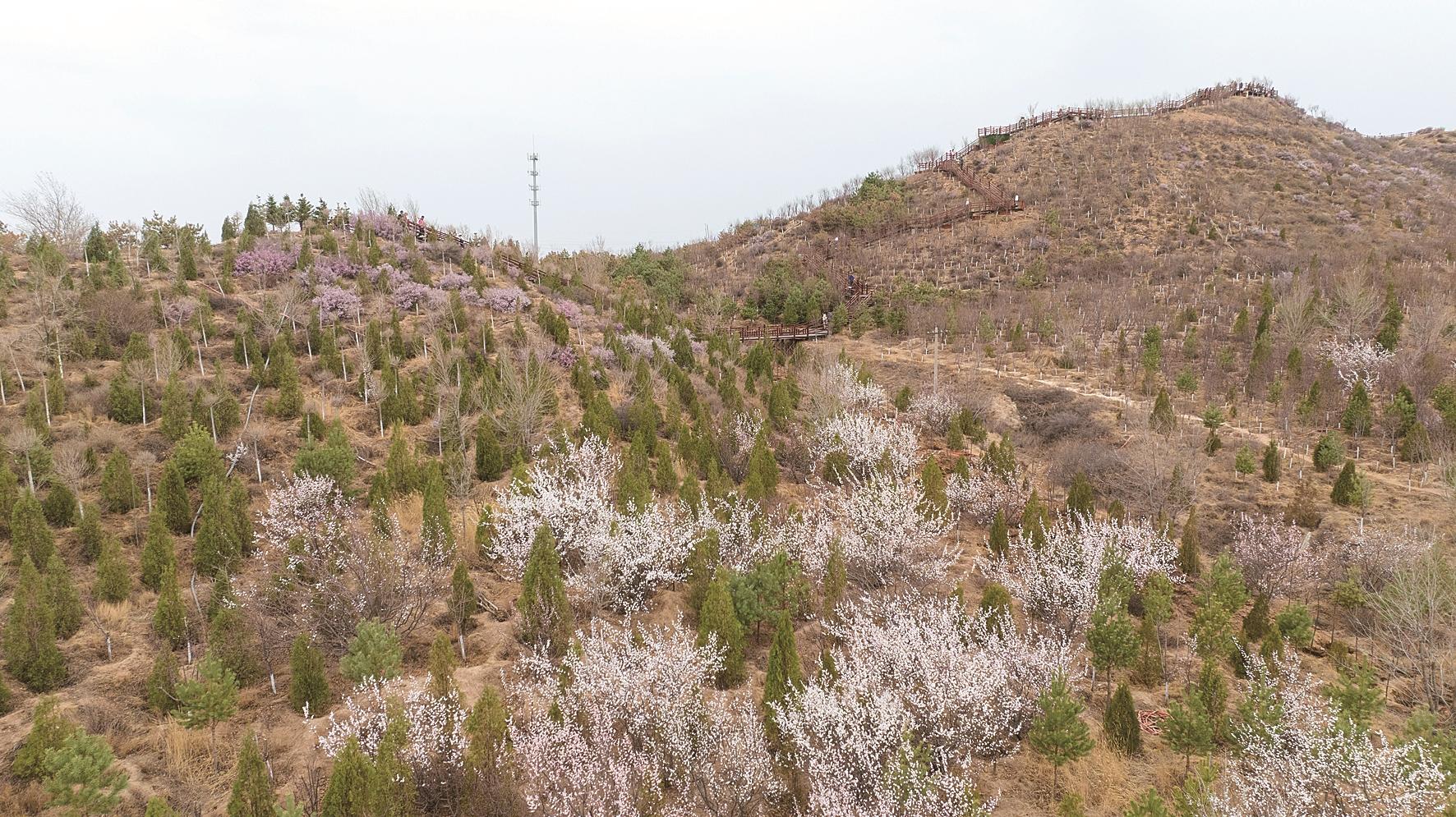 台地公园地势起伏,桃花盛开时,层层叠叠,形成独特的景观。站在高处俯瞰,漫漫春花与远处的赛汗塔拉城中草原相互映衬,构成一幅绝美的春日画卷。沿着园内的小径漫步,仿佛走进了一个被春色包围的梦幻世界。