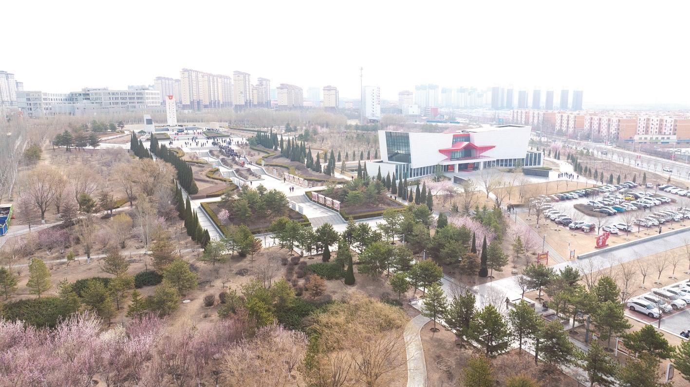 园内的桃花、杏花静静绽放,为庄严肃穆的纪念公园增添了一抹温柔的色彩。在这片宁静的土地上,花朵的盛开寓意着生命的延续与希望,让人们在追思历史的同时,也能感受到春天带来的生机与力量。
