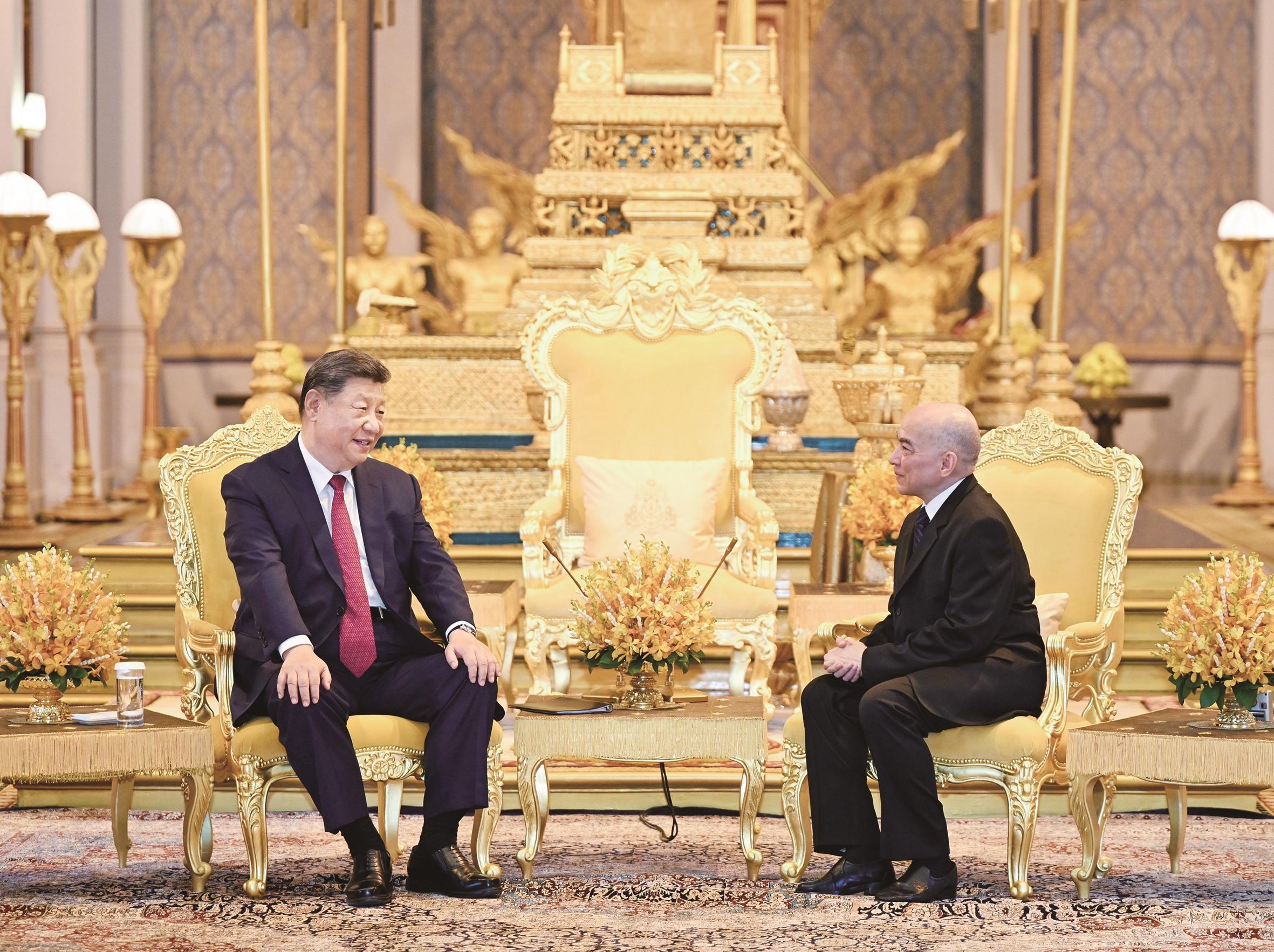 习近平强调,中方珍视同柬埔寨王室的友谊,高度评价多年来柬王室为中柬友好事业作出的重要贡献。新形势下,中柬双方要珍惜并传承中国老一辈领导人和西哈努克太皇共同缔造的中柬铁杆友谊,赋予中柬命运共同体新的时代内涵,服务各自国家发展和人民福祉,为构建周边命运共同体、推动构建人类命运共同体作出更大贡献。中方坚定支持柬埔寨保持稳定、加快发展、改善民生,走符合本国国情的发展道路,相信中国式现代化将为柬埔寨等周边国家带来更多机遇,相信构建新时代全天候中柬命运共同体一定会谱写壮丽篇章。