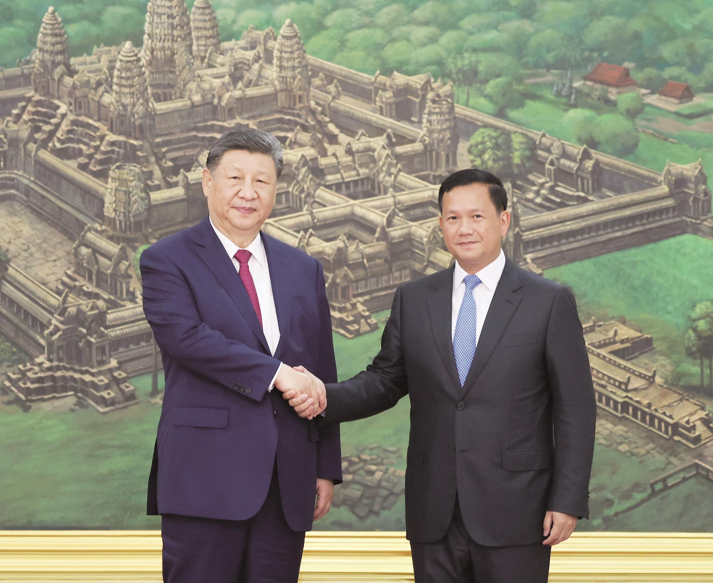 新华社金边4月17日电(记者 郝薇薇 张远 吴夏)4月17日晚,国家主席习近平同柬埔寨首相洪玛奈在金边和平大厦举行会谈。两国领导人一致同意携手构建新时代全天候中柬命运共同体,宣布2025年为“中柬旅游年”。