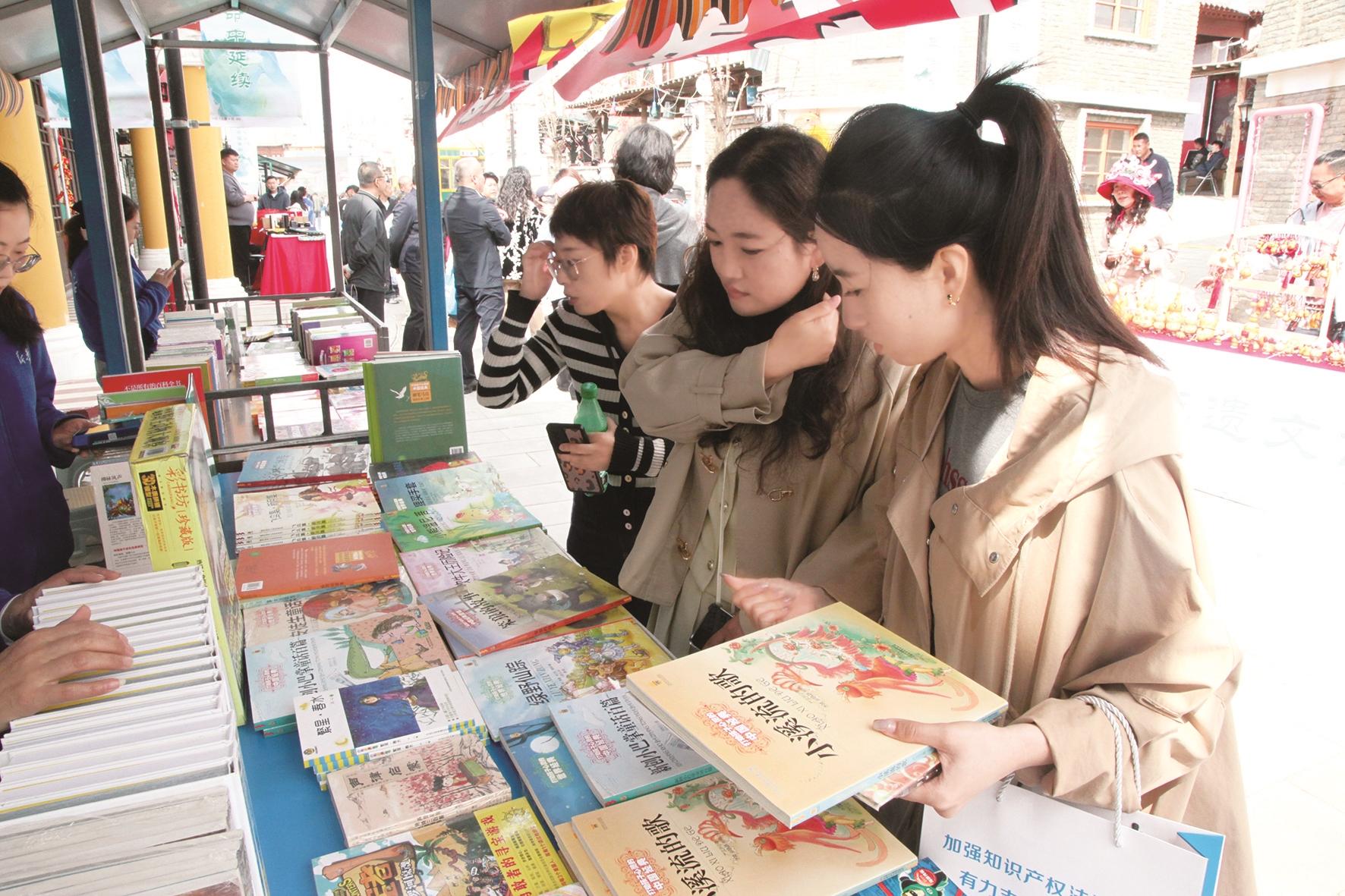 4月20日,包头市第十四届鹿城读书节暨系列活动启动仪式在石拐区包头古城拉开帷幕。活动以“阅见北疆 书香包头——深化全民阅读 书香直达基层”为主题,通过“阅读+旅游+非遗+消费”的创新融合,为市民开启一场沉浸式文化之旅。图为市民选购心仪书籍。见习记者 郇宇 摄