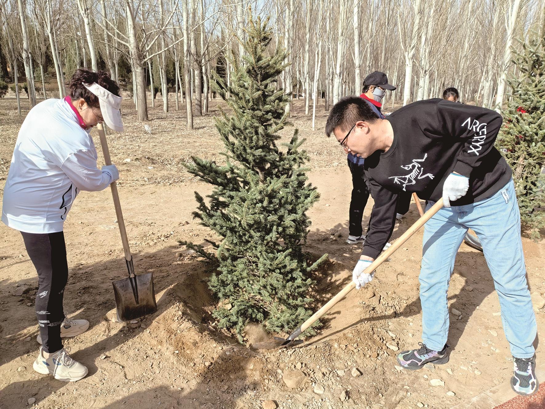 本报讯 4月17日,青山区乌素图街道利民社区在乌素图公园组织开展植树活动。活动现场,大家分工明确、紧密配合,挥锹铲土、扶苗填坑、提水浇灌,将100余棵树苗精心种植在健步道两侧。