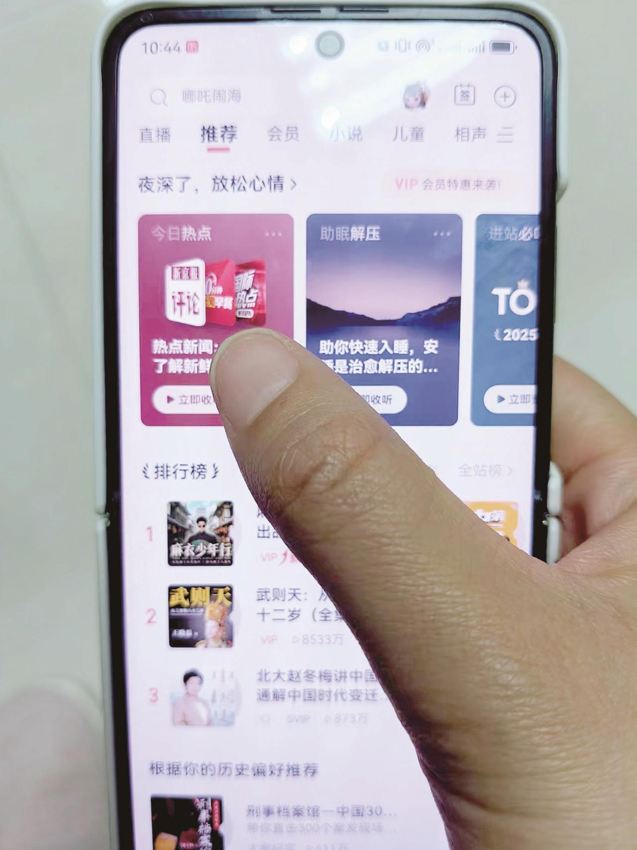 在达拉特发电厂上班的“95后”职工刘俊伟,是“听书”的忠实用户。“每天开车往返两地,路上需要将近两小时。一边开车一边听书,平均一天能听完一本书,一年累计能‘读完’200多本书。”刘俊伟向记者展示了手机里的听书记录,从《人间值得》到《微观经济学》,覆盖文学、社科等多个领域。