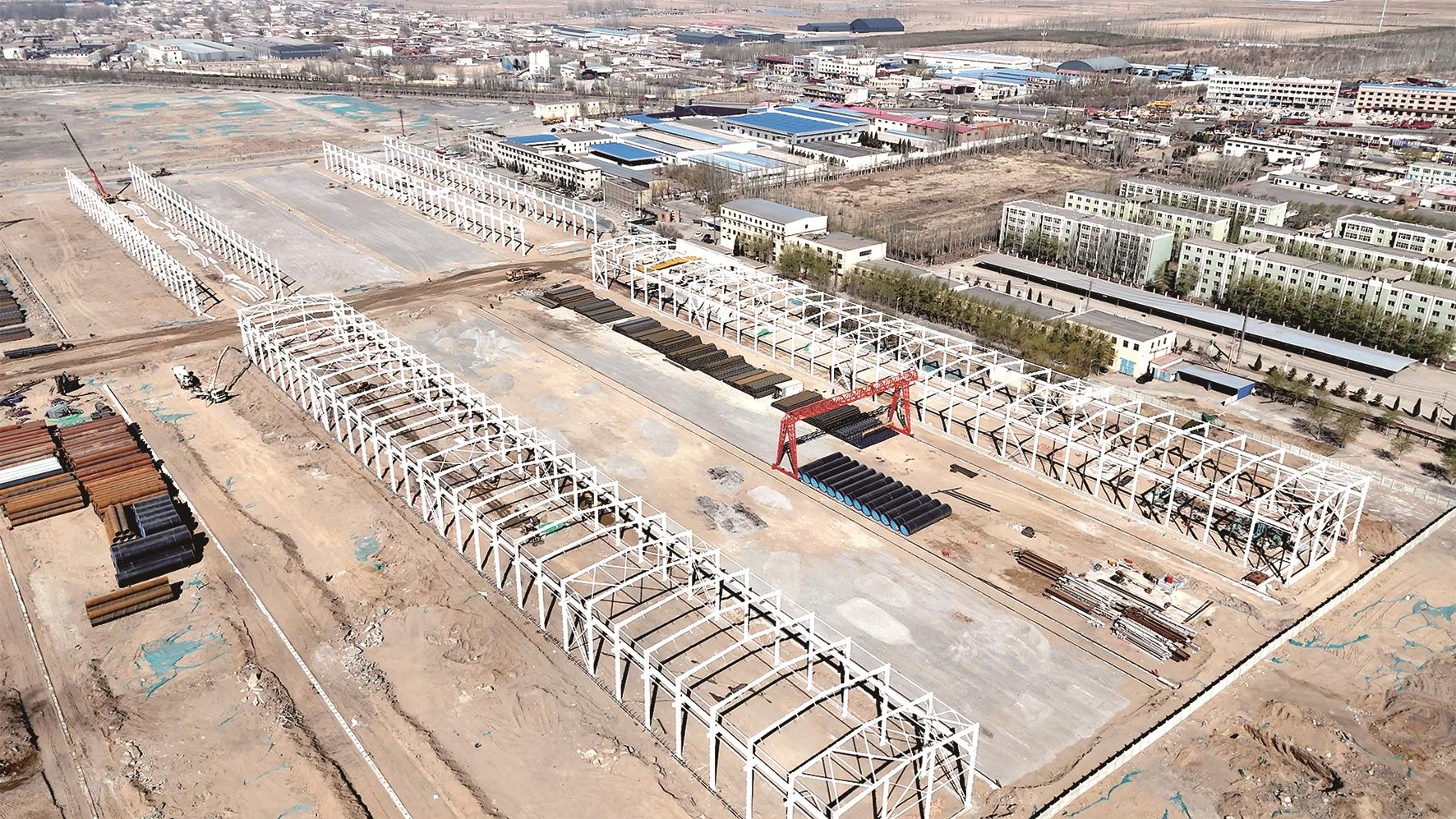 内蒙古兴润达新能源科技有限公司兴润达光伏组件支架及边框智能制造项目厂房已建成,正在安装设备。