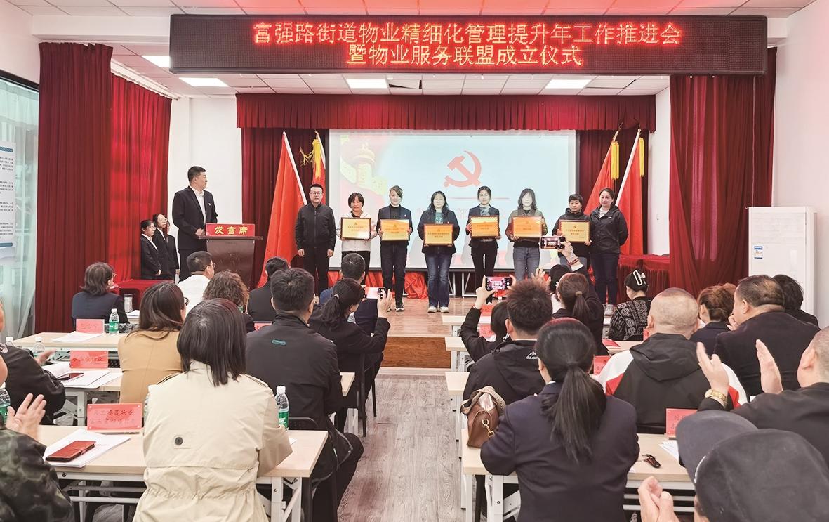 日前,富强路街道召开了一场接地气的物业精细化管理推进会。会上,14个物业党支部“挂牌上岗”,9家物业企业携手成立街道物业联盟,为居民解决烦心事带来了新希望。