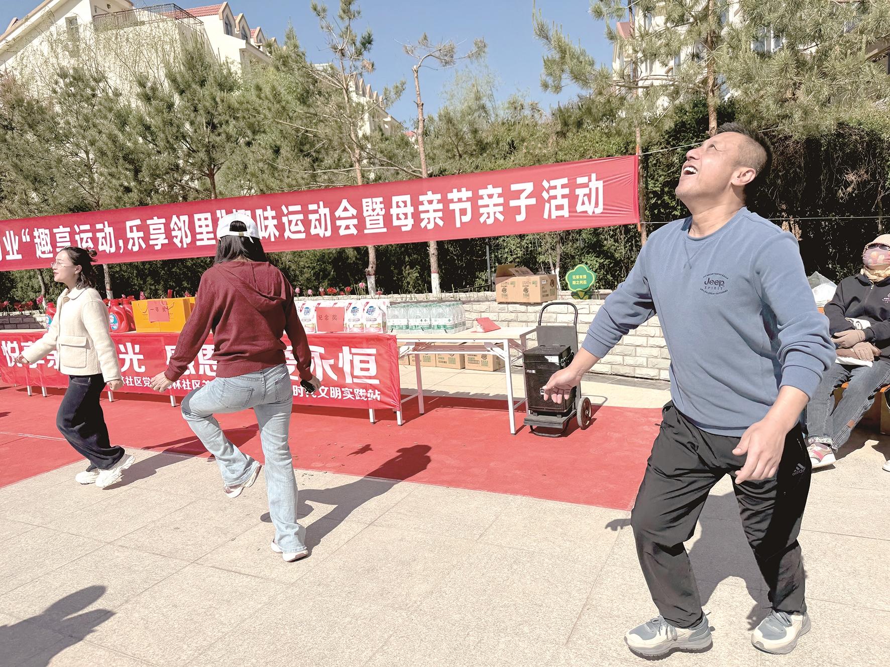 本报讯 5月10日,青山区锦林花园小广场举办了一场别开生面的“悦享亲子时光·感恩母爱永恒”亲子趣味运动会。活动以“亲子跳绳接力赛”开始,吸引了70余组家庭热情参与。包括跳绳、踢毽子、套圈等项目,在“感恩套圈”环节,孩子们手持彩色套圈,瞄准摆放着礼物的展台,努力为妈妈赢取节日惊喜。活动让妈妈与孩子们在欢声笑语中留下温馨的亲子回忆。
