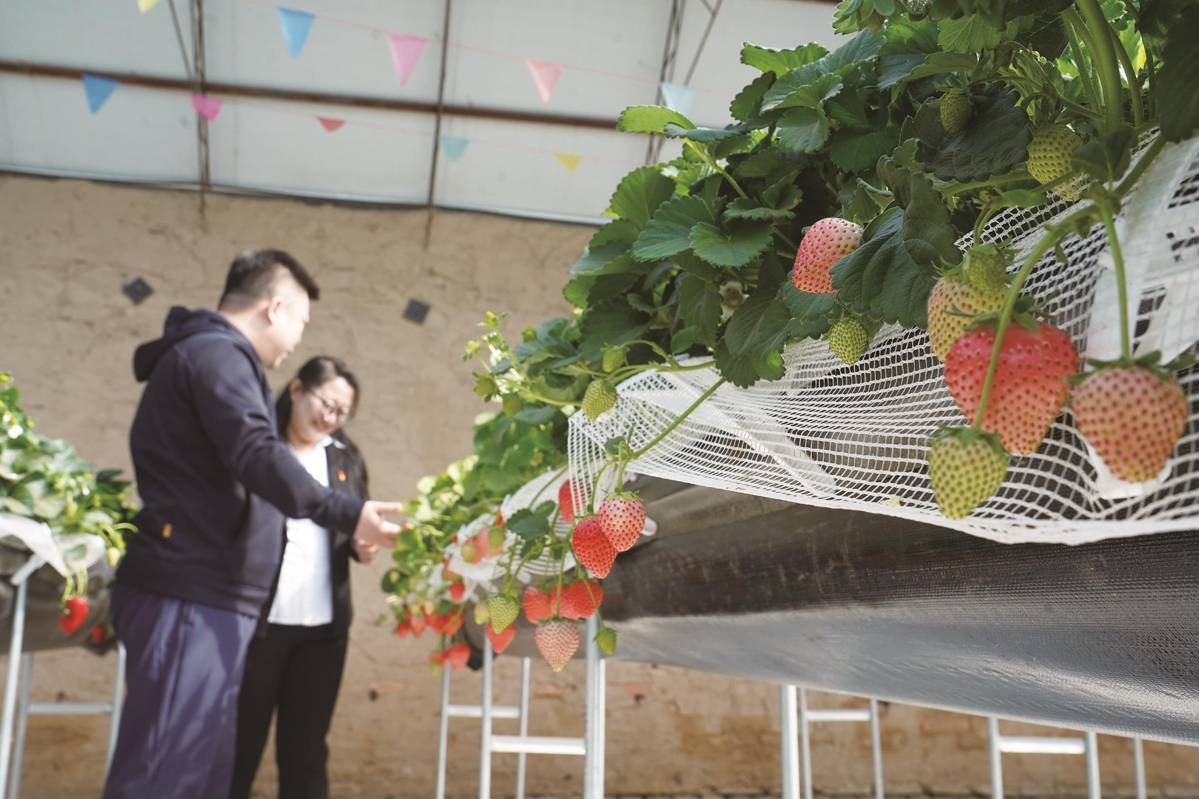 每逢周末,来自市区的游客络绎不绝。市民张女士带着女儿小心翼翼地摘下一颗“粉玉”草莓,“孩子第一次见到长在半空的草莓,充满了惊喜。这里既能体验采摘乐趣,又能学到农业知识,我们已经来了三次。”张女士说。