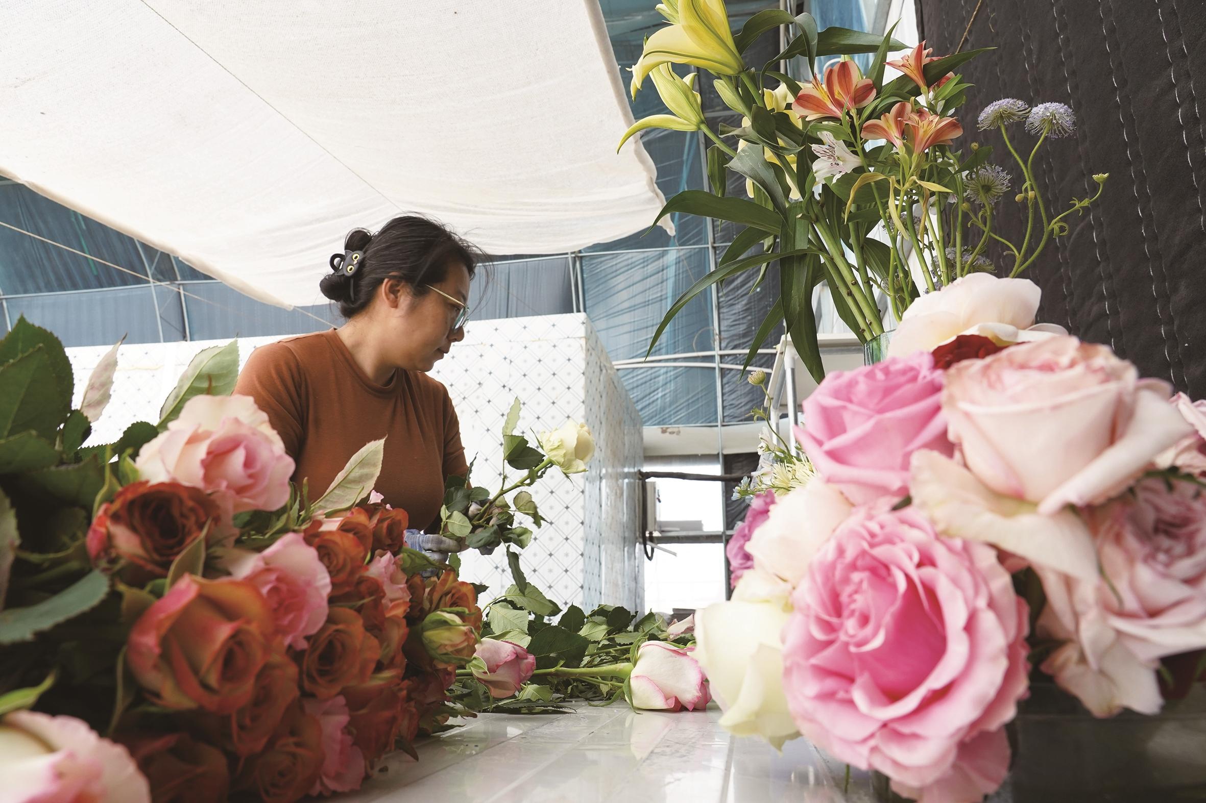 “现在大家都比较注重仪式感,鲜花也成为了表达爱意的常见方式,而且鲜花消费也不仅仅局限在固定的节日和场合,还成为了很多家庭的日常消费品,这给花卉产业的发展带来了巨大潜力。我们这7栋大棚的鲜花因季节不同、花期不同,一年四季都会有鲜花,实现了‘玫瑰四季开,百合冬飘香’的种植效果。”张晓亮说,他种植鲜花已经7年了,今年选择在羊山窑村种植鲜花就是考虑到市场前景比较好,而且离市区近,交通便利,市民往来方便,鲜花运输便捷。