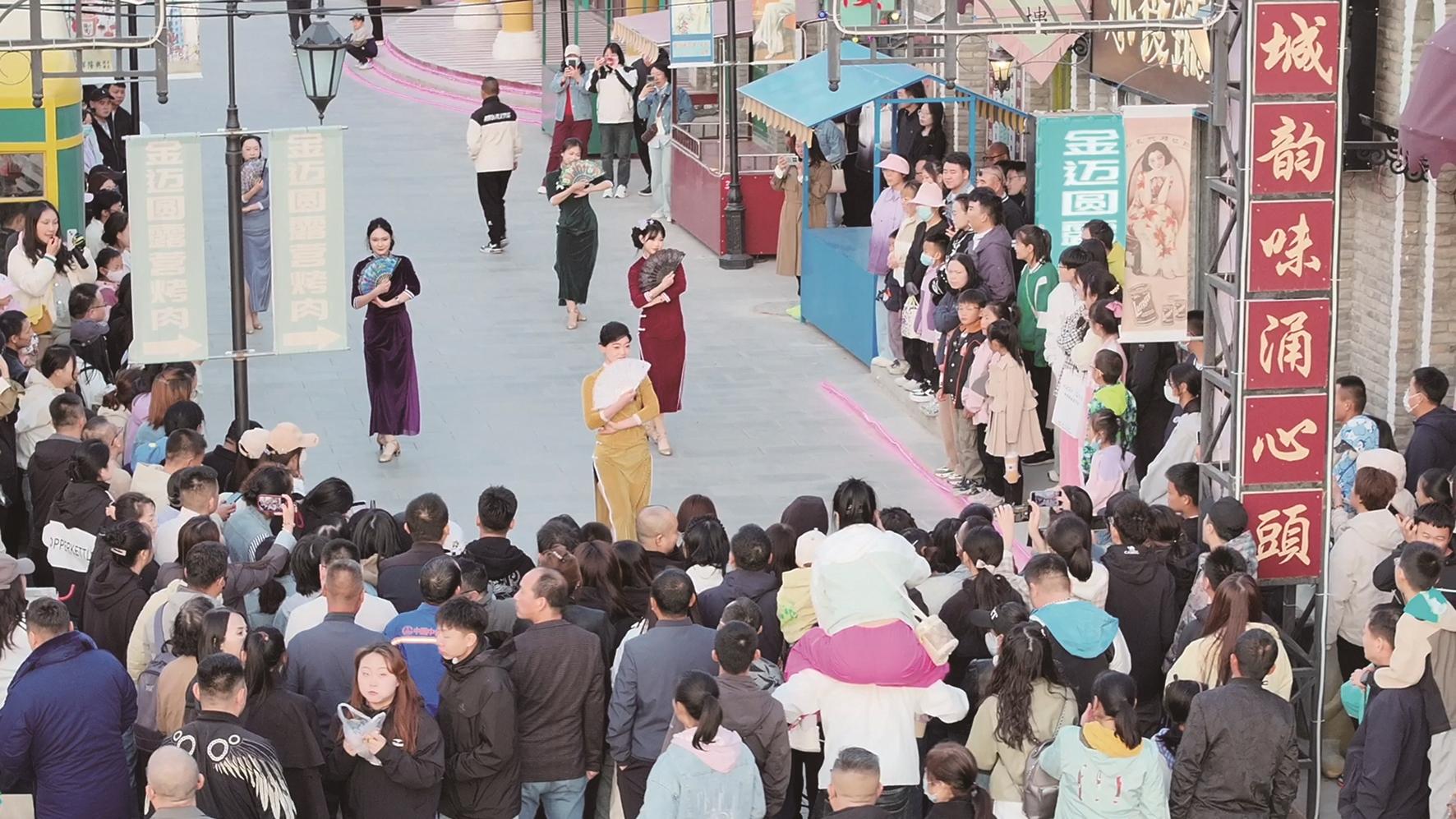 镜头切换至各大景区,一场场沉浸式文旅盛宴正震撼上演。白天的包头古城,非遗民俗体验勾起怀旧情怀;暮色四合,古城变身璀璨灯海。农耕产业园内,“一鹿有你”“二十四节气”等巨型花灯与年橘、灯笼交相辉映,大唐舞蹈、钟楼招亲、非遗火壶、铁树银花等轮番上演,让游客直观感受传统文化魅力。花舞人间景区则将摩托艇水上飞人等现代科技,与十二花神巡游等传统文化创意融合,满足不同游客需求。在“大发1913”特色历史文化街区,游客脚踏砂石路,打卡怀旧风十足的供销社、新华书店、俱乐部,探寻到岁月深处的温暖。众多游客用镜头记录美好瞬间分享到朋友圈,让石拐文旅的独特魅力持续破圈。